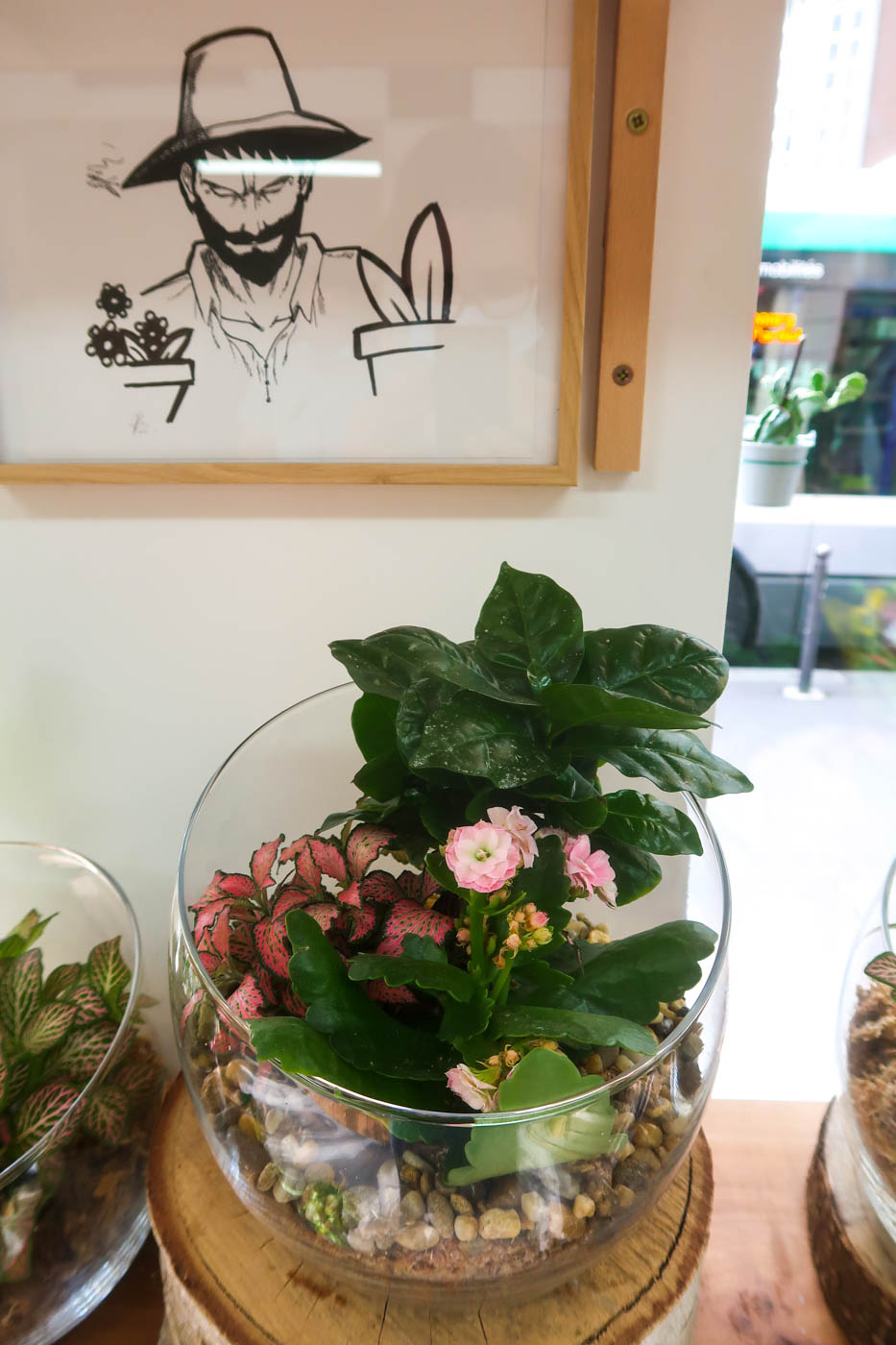Parfois, quelques images en disent plus que les mots : je vous propose de faire un tour dans la boutique et de découvrir des terrariums et différents types de compositions – fleurs éternelles, boules dépolluantes, etc. – déjà prêts à être rapportés ou offerts !