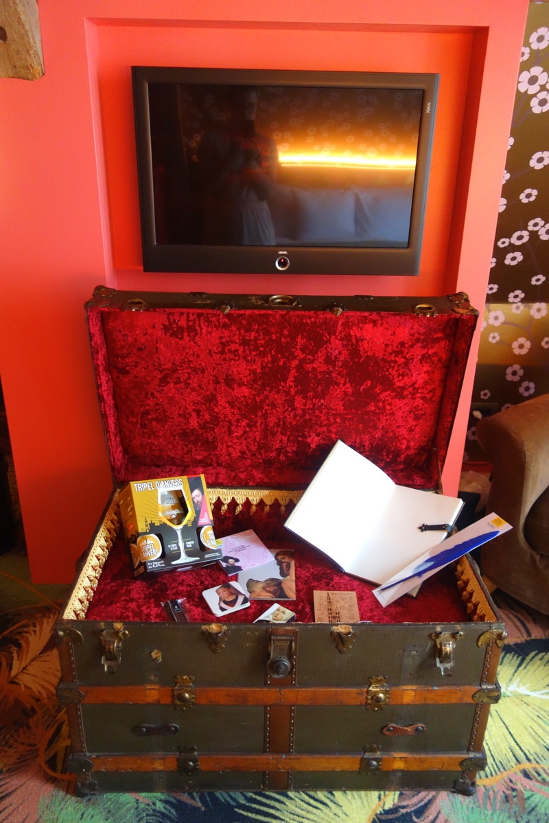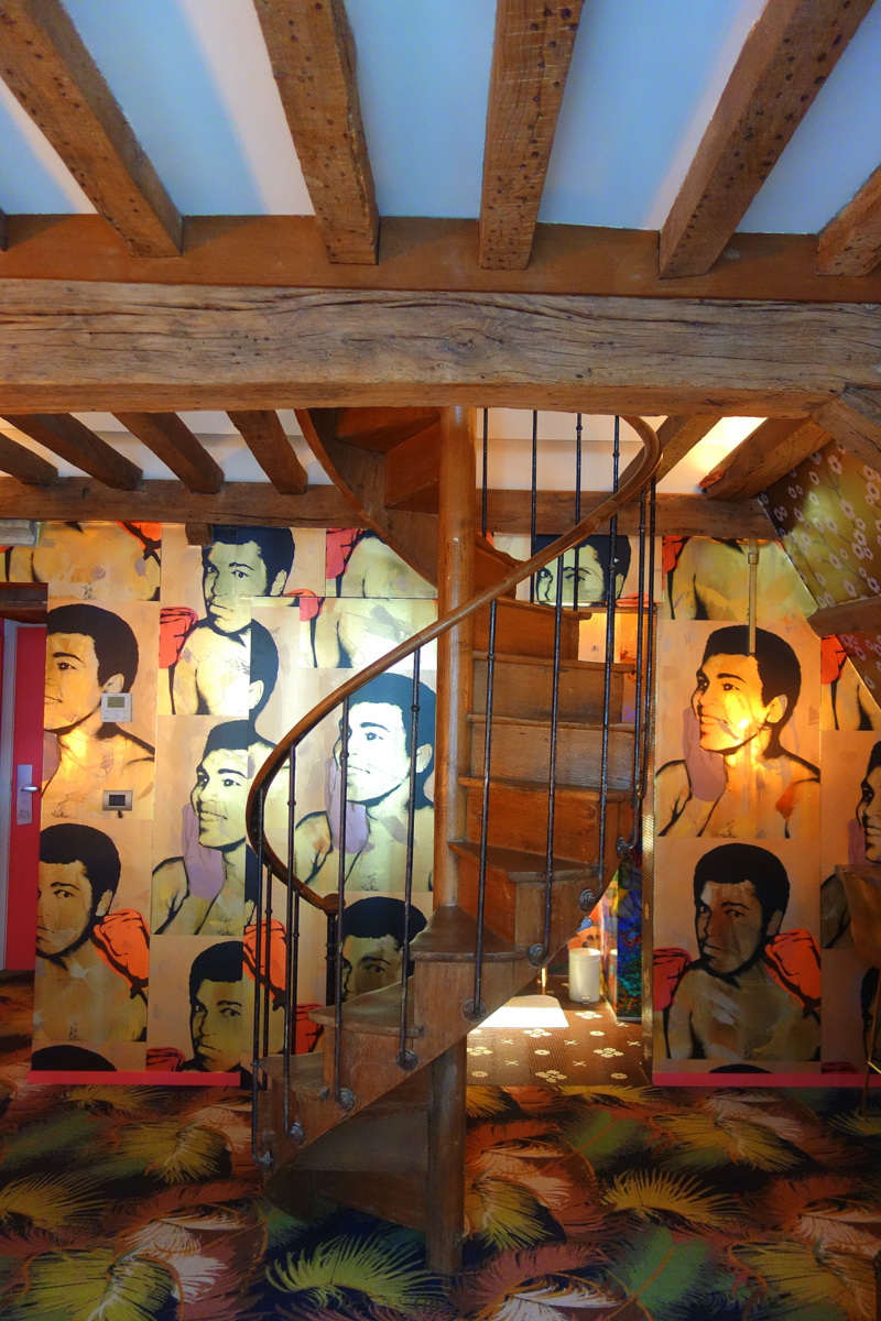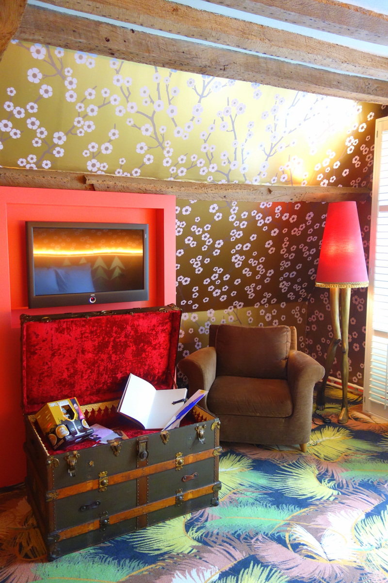 Chaque chambre a sa propre identité. J’ai adoré la mienne ! J’ai trouvé les tapisseries sublimes, y compris celle de la salle de bains. J’avais beaucoup d’espace et la possibilité de m’asseoir dans un fauteuil douillet ou sur l’une des chaises hautes. Côté rangement, toute la place dont aurait besoin un couple pour plusieurs jours est disponible. Un escalier en bois, un authentique qui craque, permet d’aller sur une mezzanine occupée par… un ours en peluche ! Je me suis sentie très bien dans cette chambre. Je ne vois pas comment il aurait pu en être autrement.