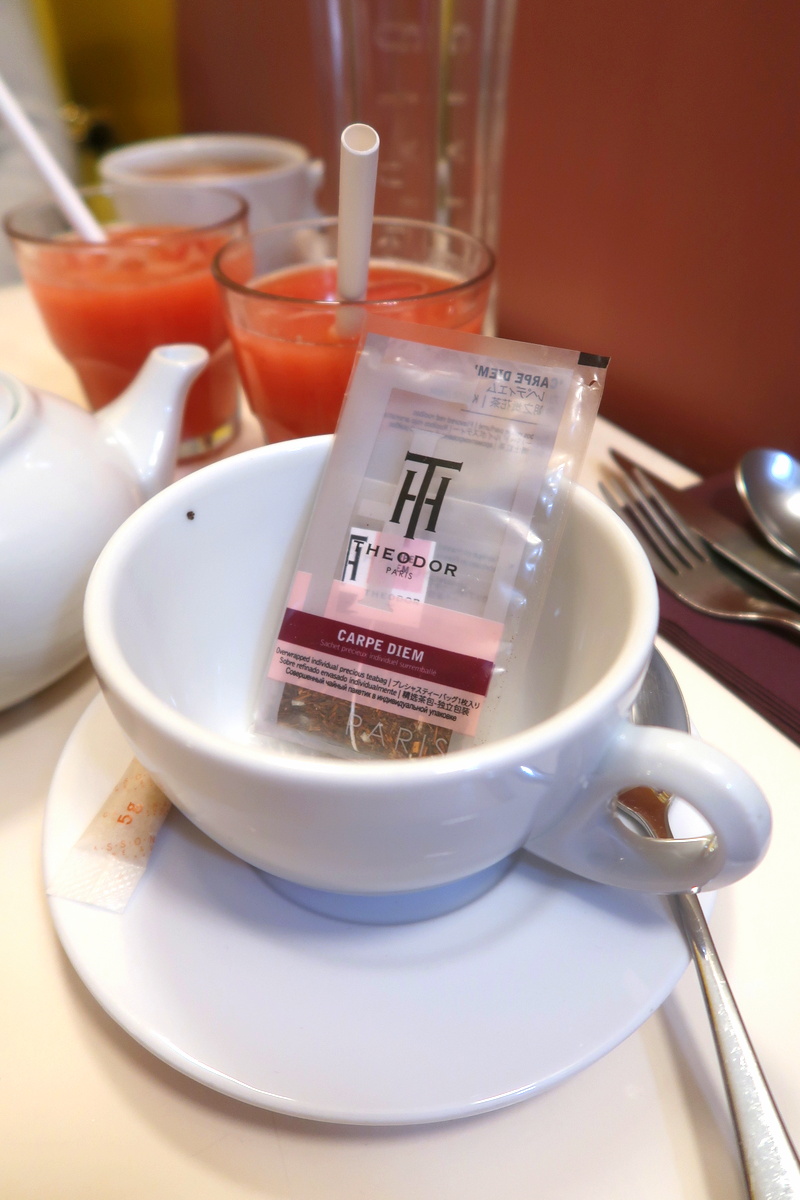 - une boisson chaude au choix. J’ai opté pour un rooibos puisque, amatrice de thé, je dois en ce moment privilégier tisanes et boissons sans théine.