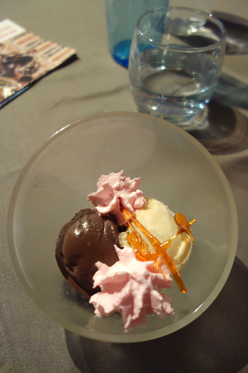 Junior a eu le choix entre deux options et a choisi la glace. Il est très très friand des desserts glacés. Monsieur a terminé son repas sur un café.