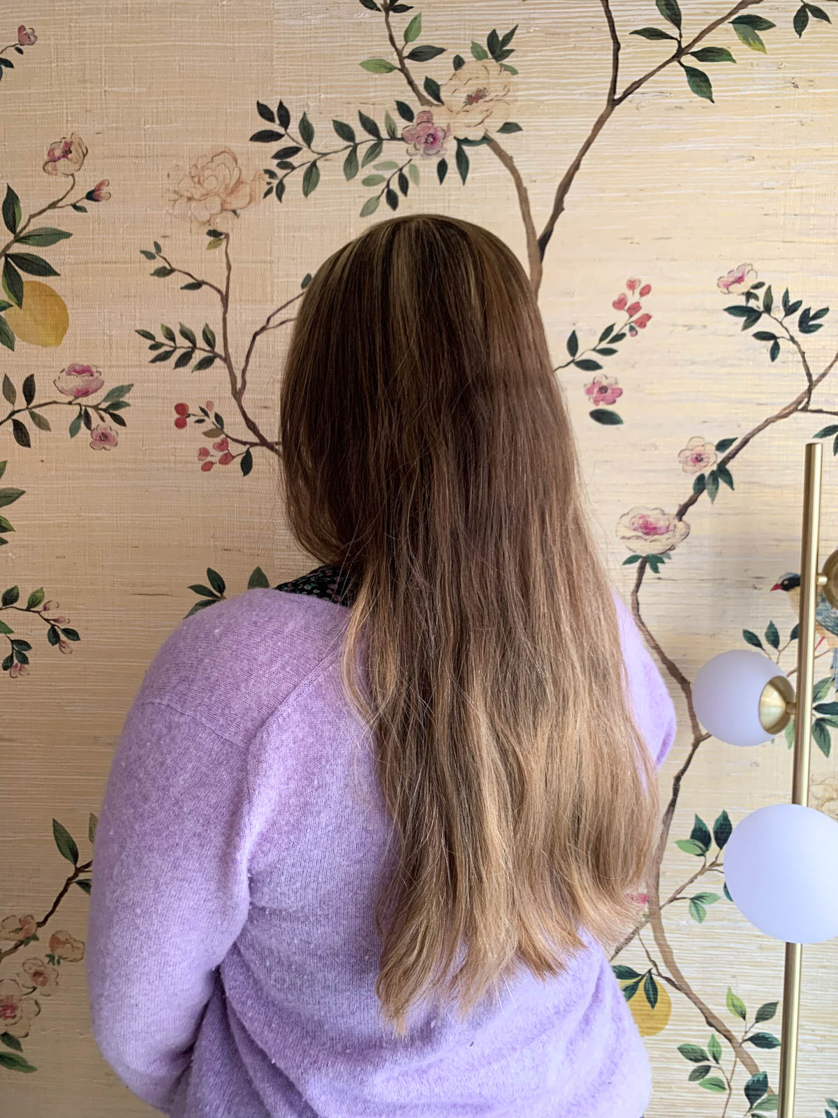 Mon rendez-vous de fin janvier consacré au balayage a duré 2h30, dont 1h d’application car j’ai les cheveux qui dépassent un peu le milieu du dos en longueur. Mon cuir chevelu a vraiment bien supporté les soins prodigués et je n’ai pas eu à aller sous un casque chauffant, ce que je trouve plutôt confortable ! L’idée du balayage était qu’il puisse bien se voir avec les cheveux attachés car je fais beaucoup de nattes voire de chignons (les enfants ont une passion pour le tirage de cheveux donc ça ne m’aide pas à les lâcher !). Le tarif pour un balayage sur cheveux longs démarre à 130€.