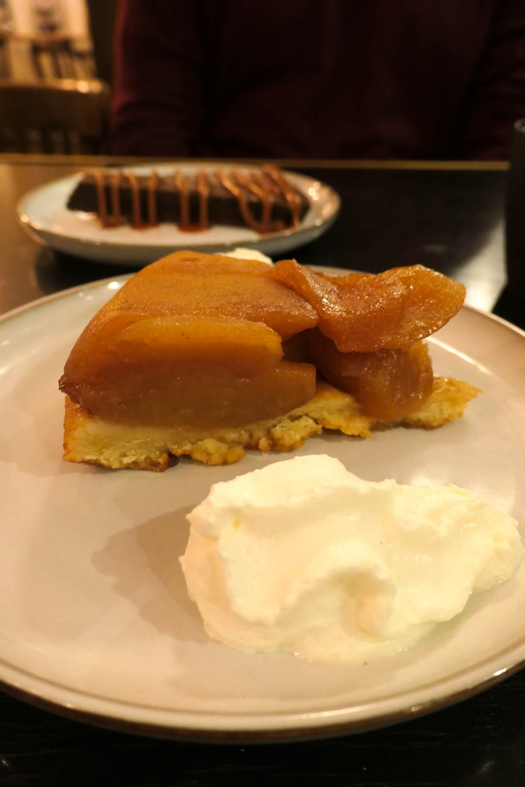 Monsieur a opté pour l’appétissante tarte tatin (10€). Le biscuit était très agréable et les pommes étaient particulièrement fondantes. Accompagné d’un expresso, c’était un dessert parfait après ce bon repas.