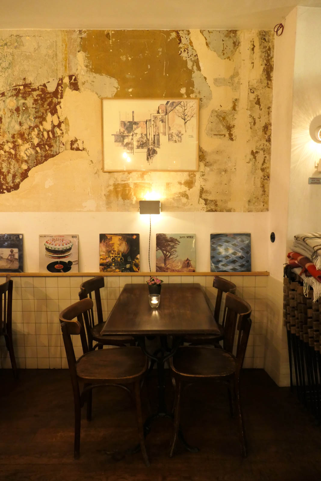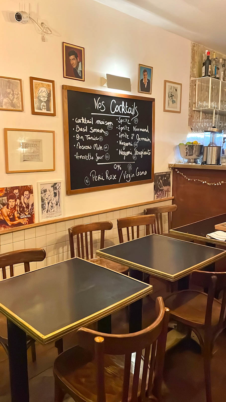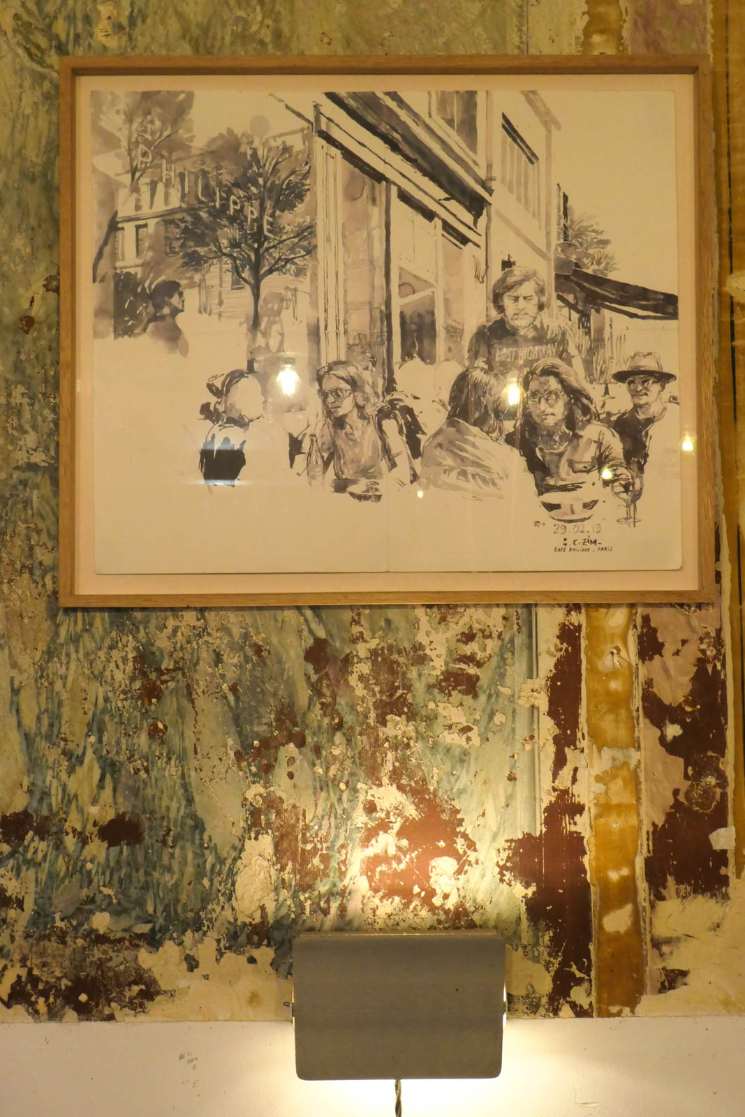 Nous avons apprécié la décoration des lieux. Chaque élément a trouvé sa place et chaque touche a son histoire. Par exemple, les dessins que l’on peut admirer au-dessus des tables sont des œuvres de l’un des membres du groupe de Moriarty, qui a croqué sur place et à son initiative les clients venus au café Philippe.