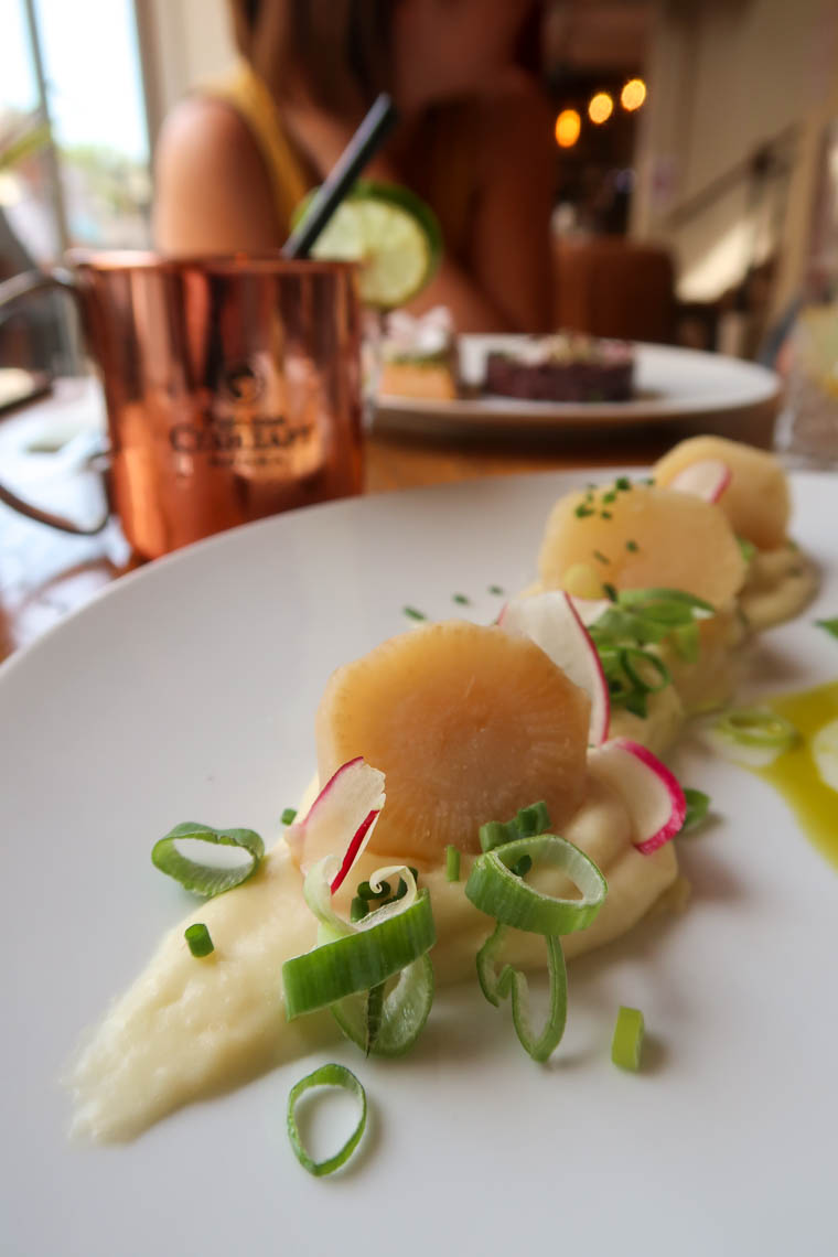 J’ai dégusté une entrée et un plat, choisis sur le menu de la semaine, proposé de 16 à 18€. L’entrée était un œuf parfait, crème de maïs et coco. Un délice !