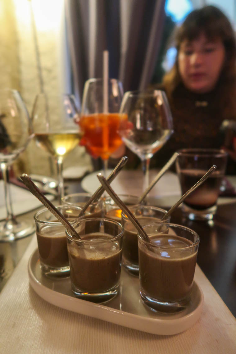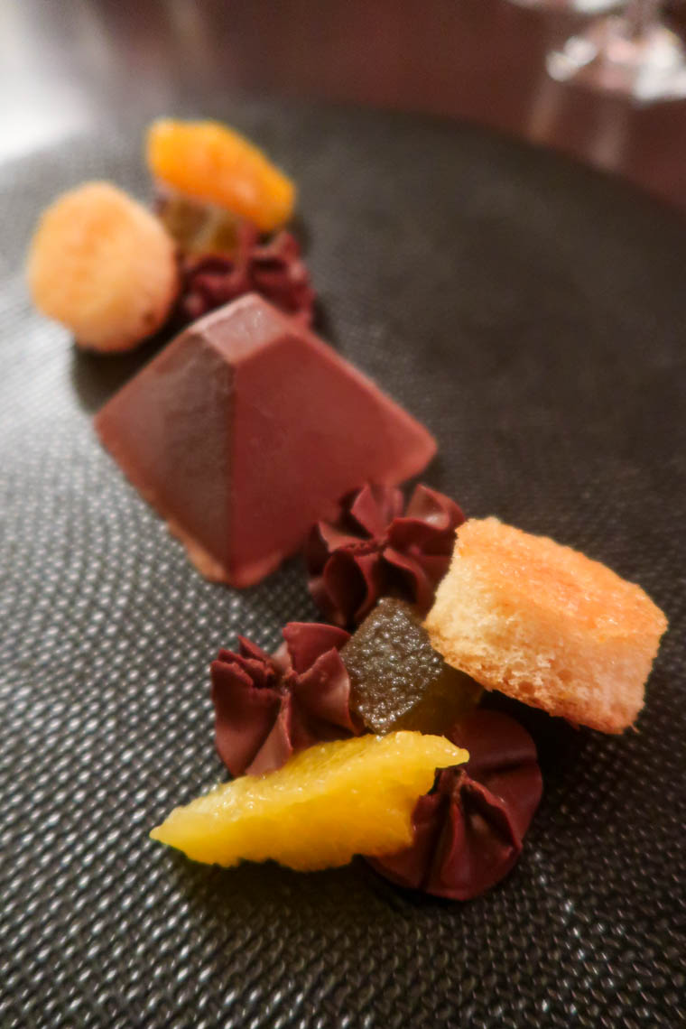 Pour ma part, après avoir vu de beaux champignons au marché, j’ai eu envie de déguster de l’onglet de bœuf français aux girolles et céleri (18€). Et, en dessert, je me suis laissée séduire par le parfait au chocolat noir Valrhona, biscuit et pâte de fruits à l’orange (9€). Aussi délicieux qu’il en a l’air !