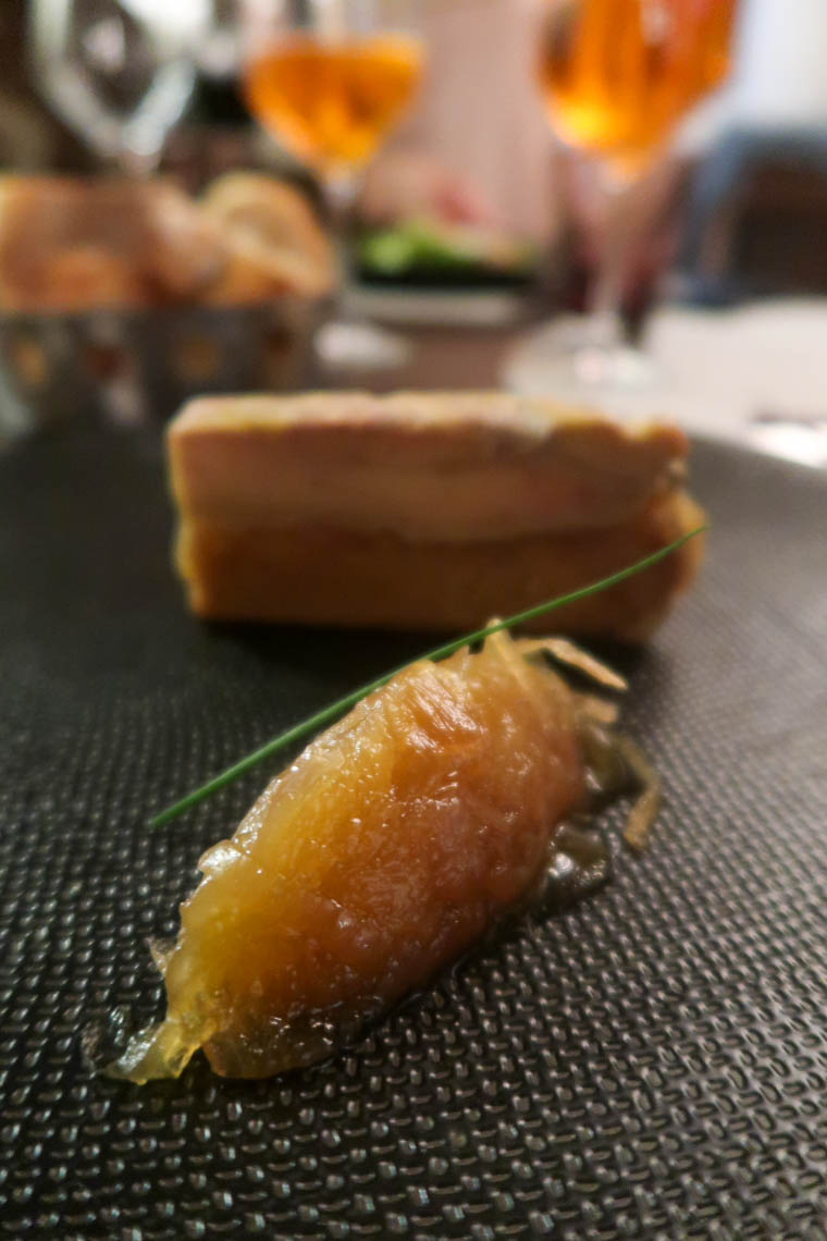 - Le pressé de foie gras de canard, chutney de poires et de pain d’épices de Carole