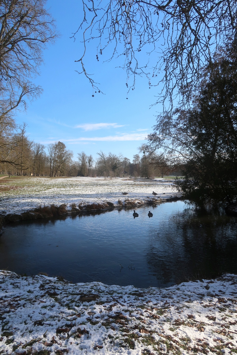Évoquer Rambouillet, c’est aussi penser à la forêt et à son gibier. Les bois s’étendent sur 20 000 hectares (20 millions de mètres carrés). Mais ce sont surtout des 150 hectares de jardins historiques, classés Jardins remarquables, dont nous avons profité. Ce sont environ 25 000 pas que nous avons faits dans la neige par une température négative. Quel plaisir de parcourir ce beau parc !