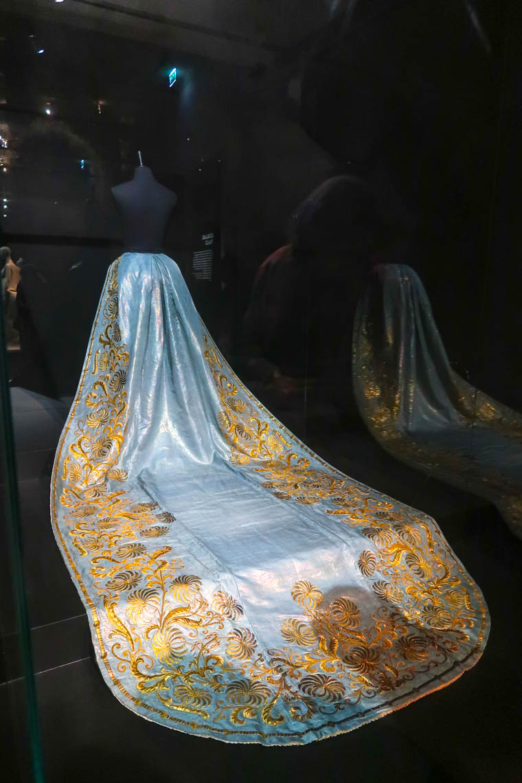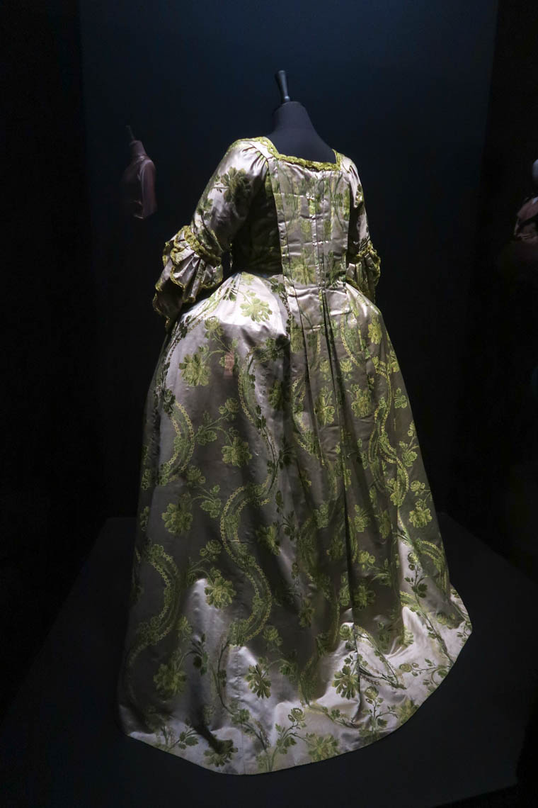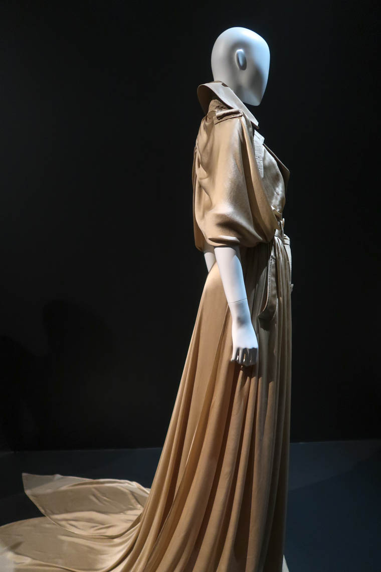 Présenter des robes ou pièces de mode de dos, c’est regarder les choses d’une autre manière, en s’attardant sur autre chose qu’un visage ou un ensemble trop vite vu. On y parle traîne (3 mètres pour une duchesse, 10 mètres pour une reine), décolleté, etc. Balenciaga, Galliano, etc. font partie des noms représentés dans cette exposition exceptionnelle.