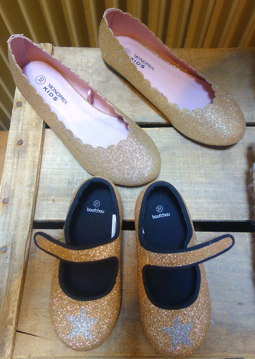 - des ballerines à paillettes couleur or, à partir de 24,99 €