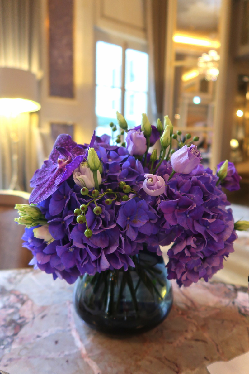 Le Jardin d’hiver est un luxueux salon aux tables comptées qui s’organisent autour d’une gigantesque composition d’orchidées. L’on s’y installe en ayant conscience de la chance d’être dans bâtiment ancien et exceptionnel. C’est amusant car j’ai en fait bien reconnu les lieux alors que cela faisait des années que je m’étais rendue à l’hôtel de Crillon pour une visite.