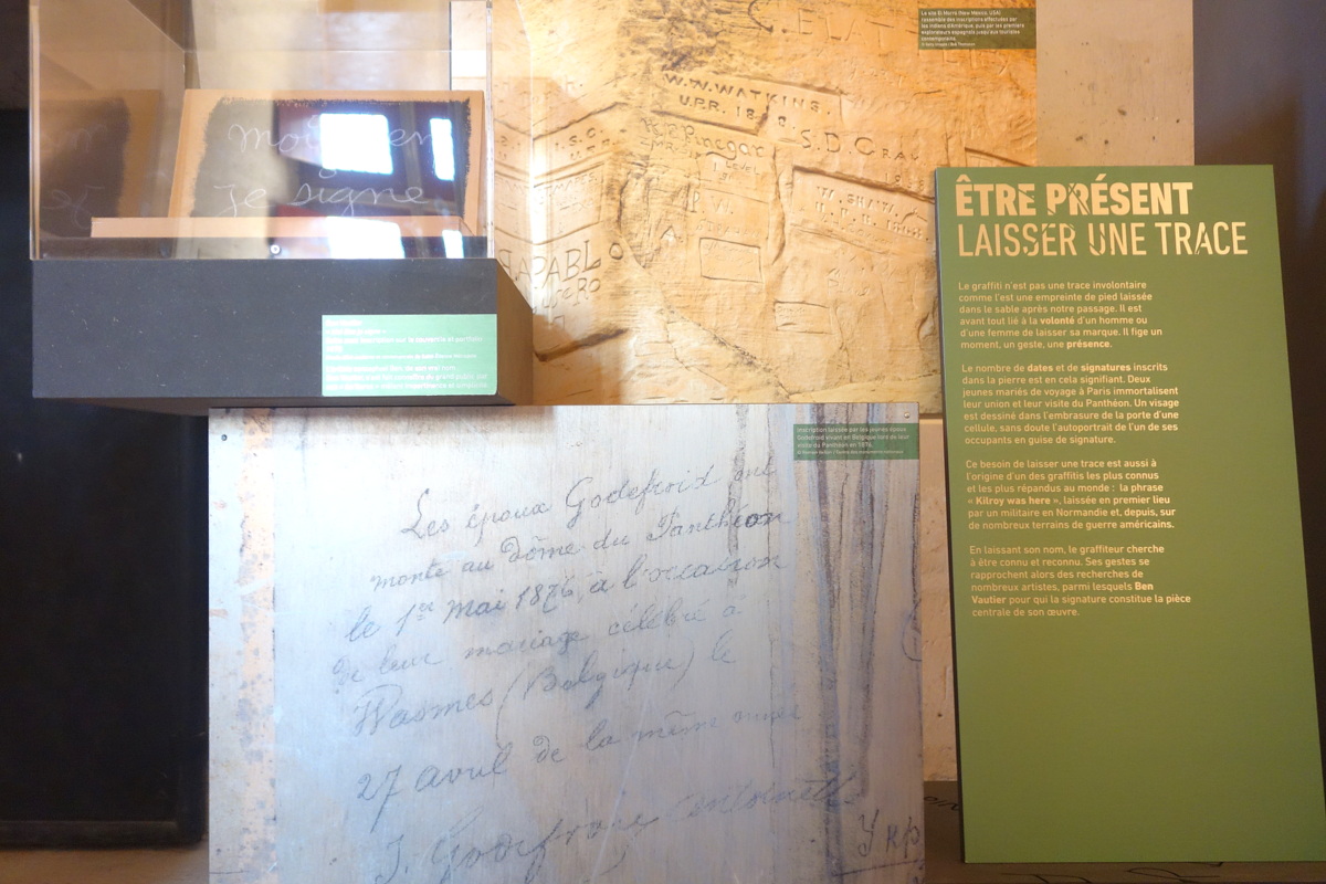 L’exposition a été l’occasion de découvrir le terme de « graffiteur« , que l’on pourrait employer pour désigner des personnes jusqu’au milieu du XXe siècle. Il se distingue des graffeurs de notre époque.