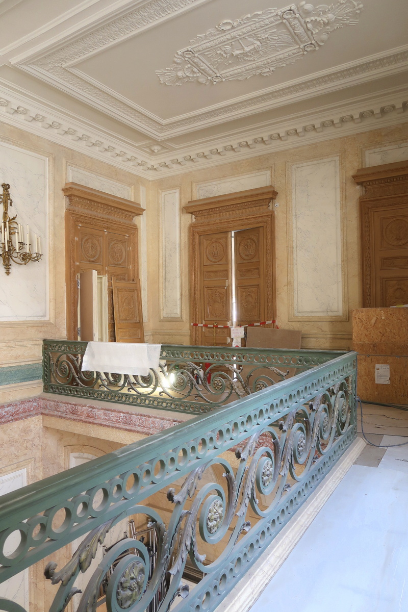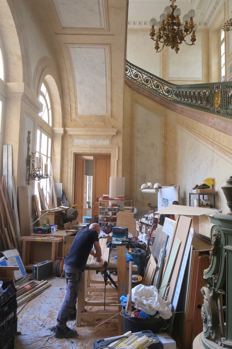 Le travail de restauration de l’hôtel de la Marine a commencé en 2017 par les extérieurs. C’est en 2018 qu’il a débuté en intérieur. Avec 280 personnes sur site à la période à laquelle je m’y suis rendue, on ne peut nier l’ampleur du chantier et l’étendue du travail accompli !