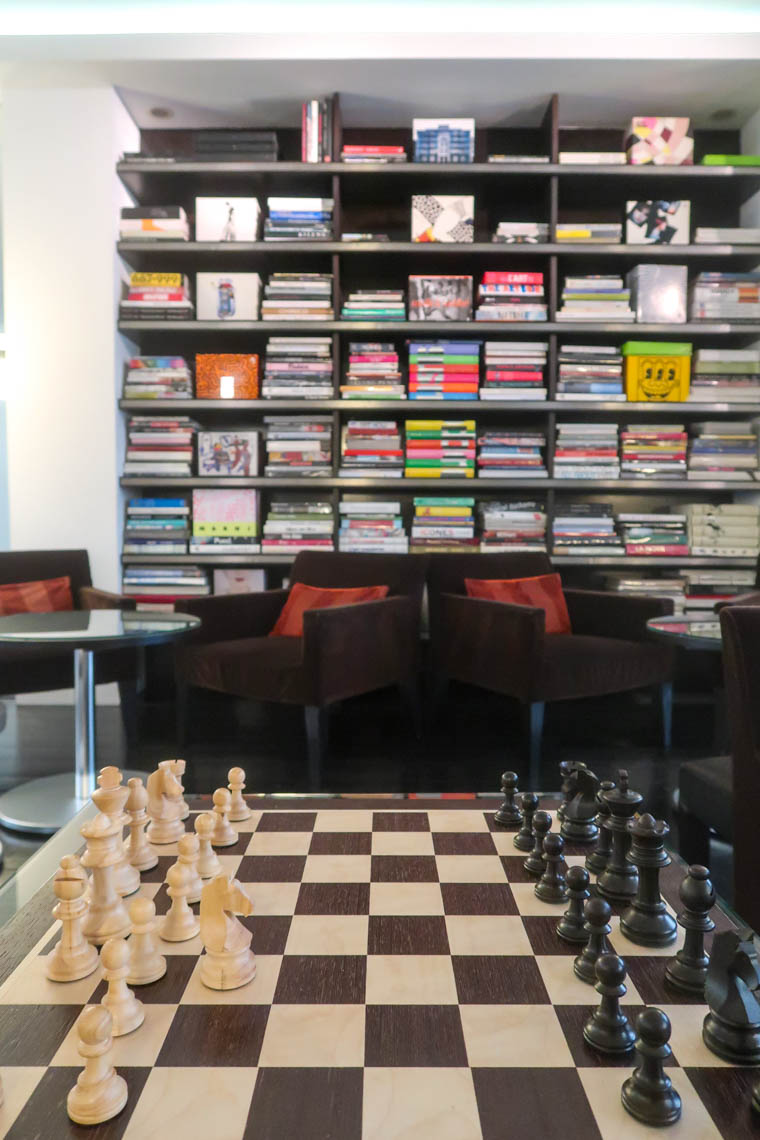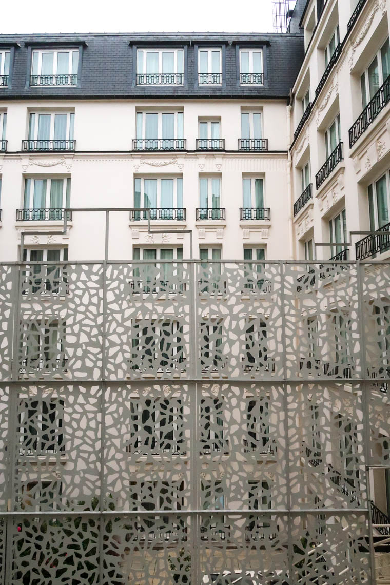Si j’y ai vu un clin d’œil à mon prénom qui commence par un A, la première lettre de l’alphabet fait ici référence à la rue d’Artois, à la forme de la tour Eiffel, etc. Le A de l’hôtel est une idée de l’artiste plasticien Fabrice Hyber. Que ce soit dans les 26 chambres et suites ou dans le lobby, des peintures sont exposées. La présence d’un artiste derrière le concept de l’hôtel n’échappe pas à son visiteur. L’établissement a ouvert en 2003 et est très bien entretenu.