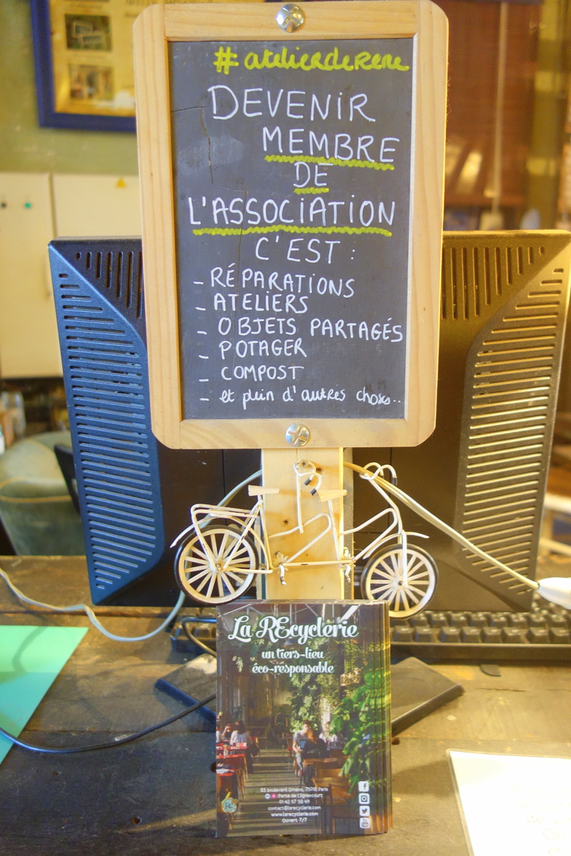 La REcyclerie est installée dans une ancienne gare de la petite ceinture. Elle veut « sensibiliser le public aux valeurs éco-responsables, de manière ludique et positive ». On y déguste une « alimentation saine, locale et durable ».