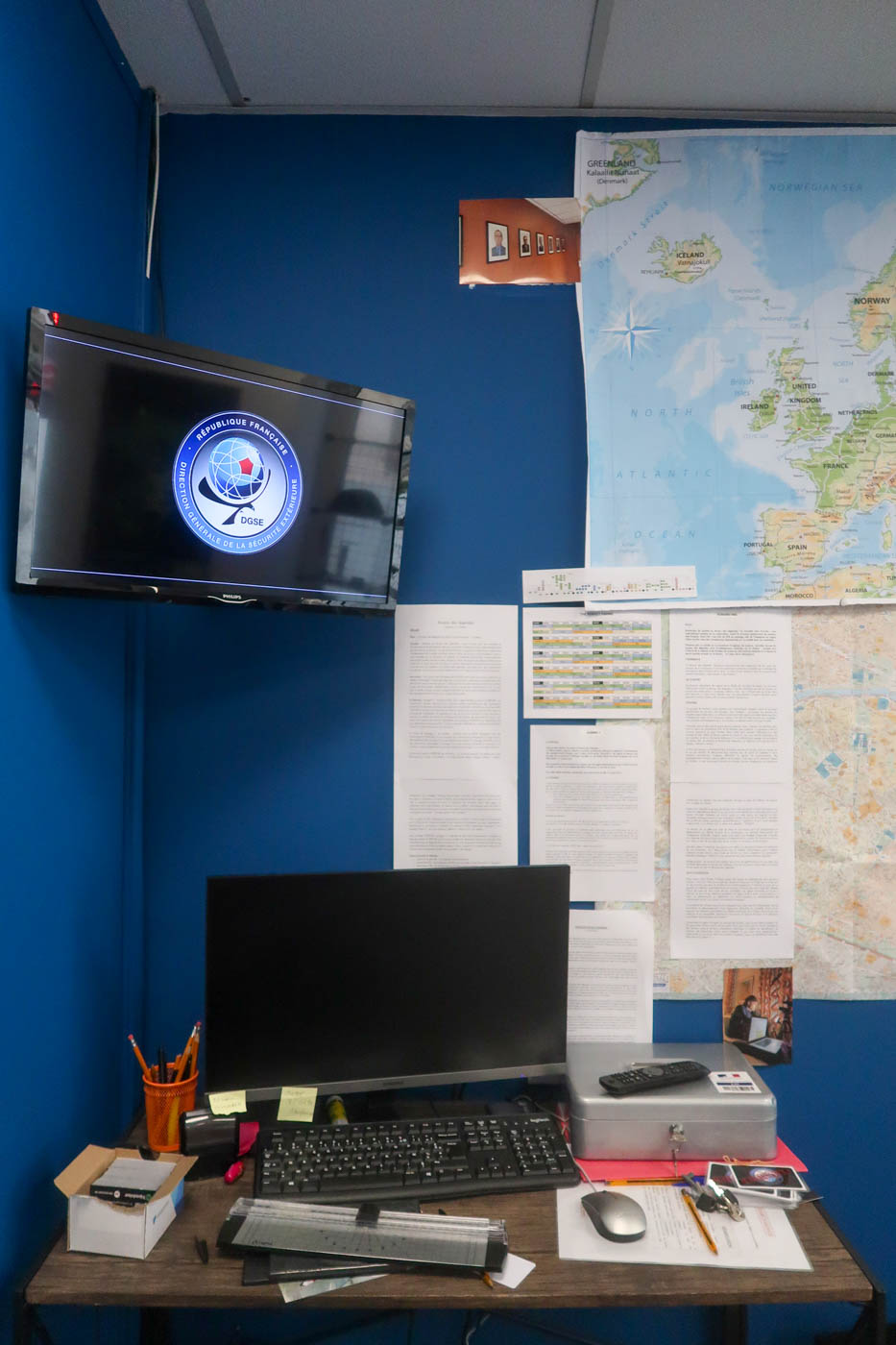Les lieux sont vastes : on évolue dans 300m². Il n’existe qu’un décor mais on ne revient pas en arrière, ce qui peut permettre à l’équipe d’accueillir d’autres joueurs lorsque l’on a progressé dans l’enquête. Les décors ont été conçus avec les décorateurs de la série Bureau des Légendes. L’on retrouve même de vrais éléments du plateau de tournage ! Ceux qui connaissent la série doivent en prendre vraiment la mesure et s’en délecter d’autant plus ! Si Monsieur et moi n’en avons pas eu l’occasion, deux d’entre nous avaient déjà vu quelques épisodes du Bureau des légendes.