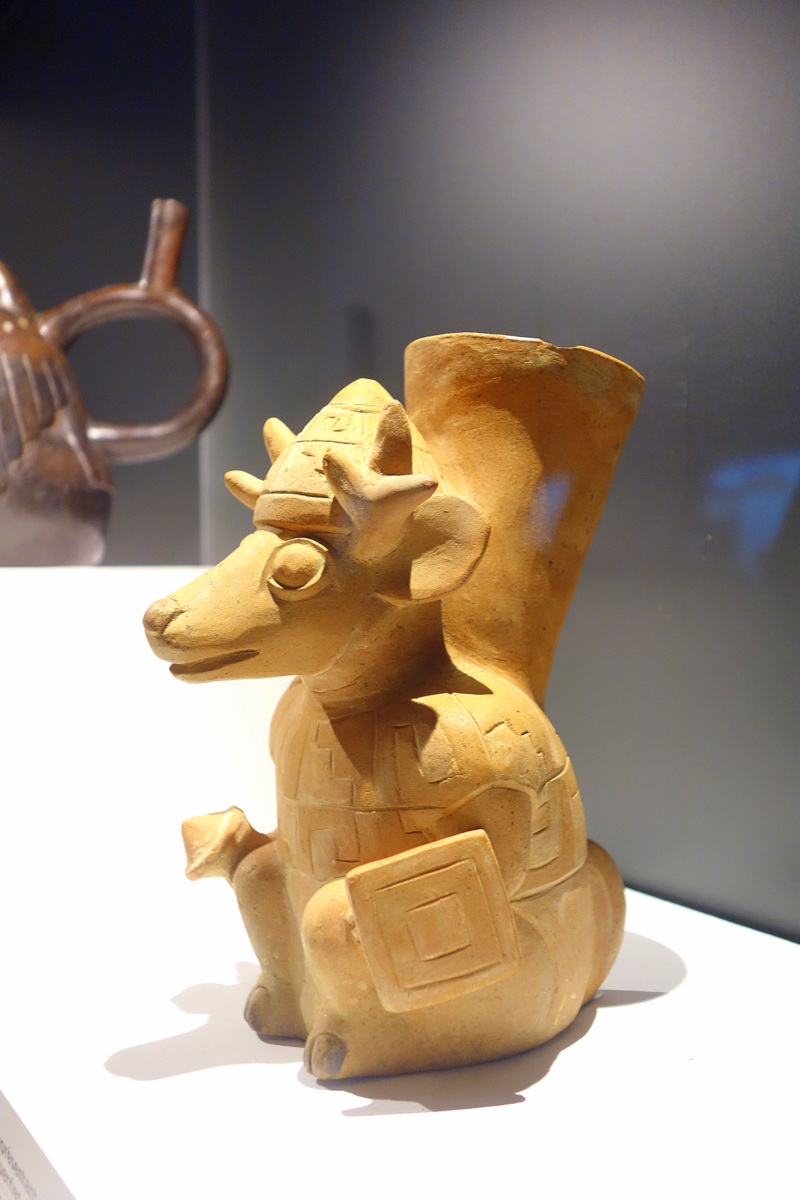 Les animaux étaient divinisés. Cela se voit sur les bouteilles par exemple. Les félins sont associés aux guerriers, les hiboux à la lune, etc. La collection de céramiques et terres cuites présentée est particulièrement fournie.