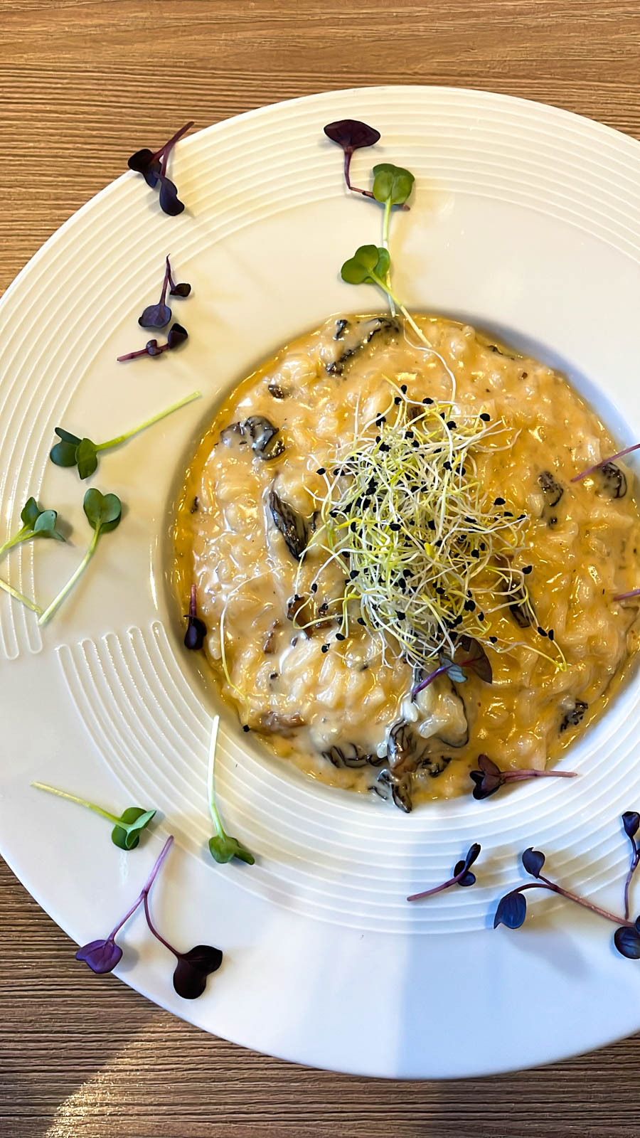 Puis, après avoir hésité avec le thon à la plancha, wok de légumes, j’ai finalement choisi de déguster un risotto aux morilles et vieux Comté (28€), qui m’a semblé être une bonne option pour une journée hivernale. Ce plat ne contenait que des ingrédients que j’affectionne : je me suis régalée.