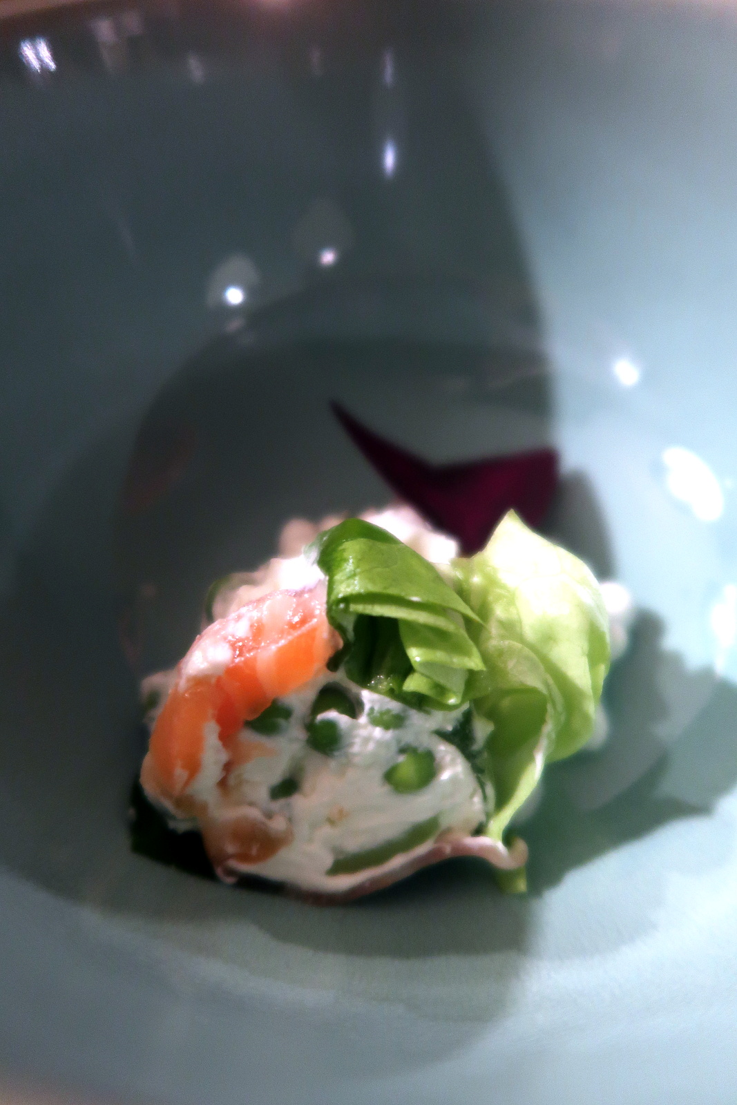 - roulé de saumon, crème d’Isigny et petits pois
