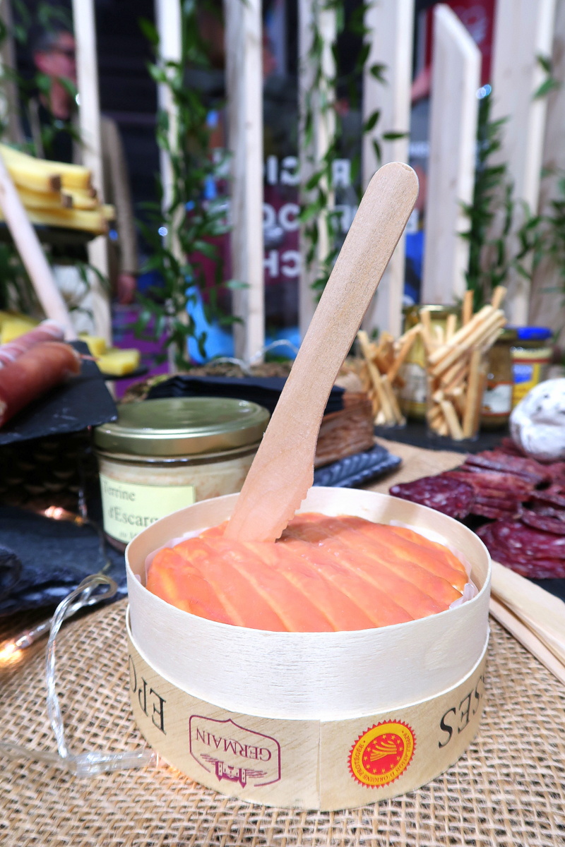 En soirée, je me suis rendue dans le hall 3, dédié aux régions de France et à leurs produits, invitée à découvrir des produits régionaux de Bourgogne-Franche-Comté, territoire agricole et forestier situé dans l’Est de la France (si besoin est de préciser !). La région compte 14 appellations d’origine protégée (AOP) et 4 indications géographiques protégées (IGP) pour les fromages, 120 vins et spiritueux et 5 AOP et 16 IGP du côté des viandes et salaisons (comme la saucisse de Morteau !).