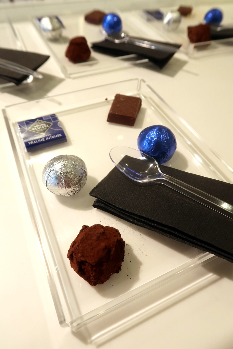 - deux coffrets noir et lait avec 15 et 28 bonbons de chocolat, des incontournables et deux nouveautés (20,70 et 34,25€)