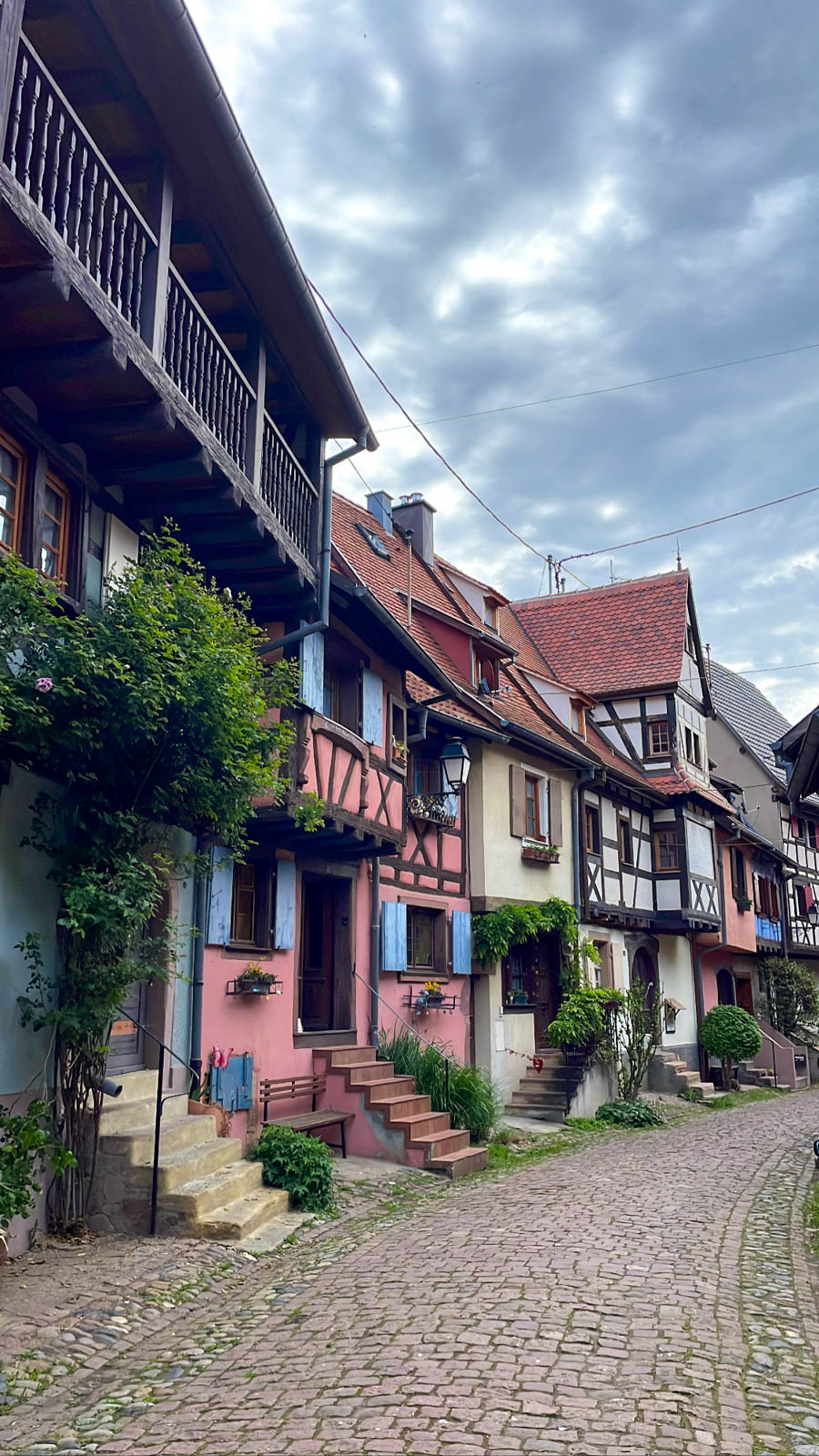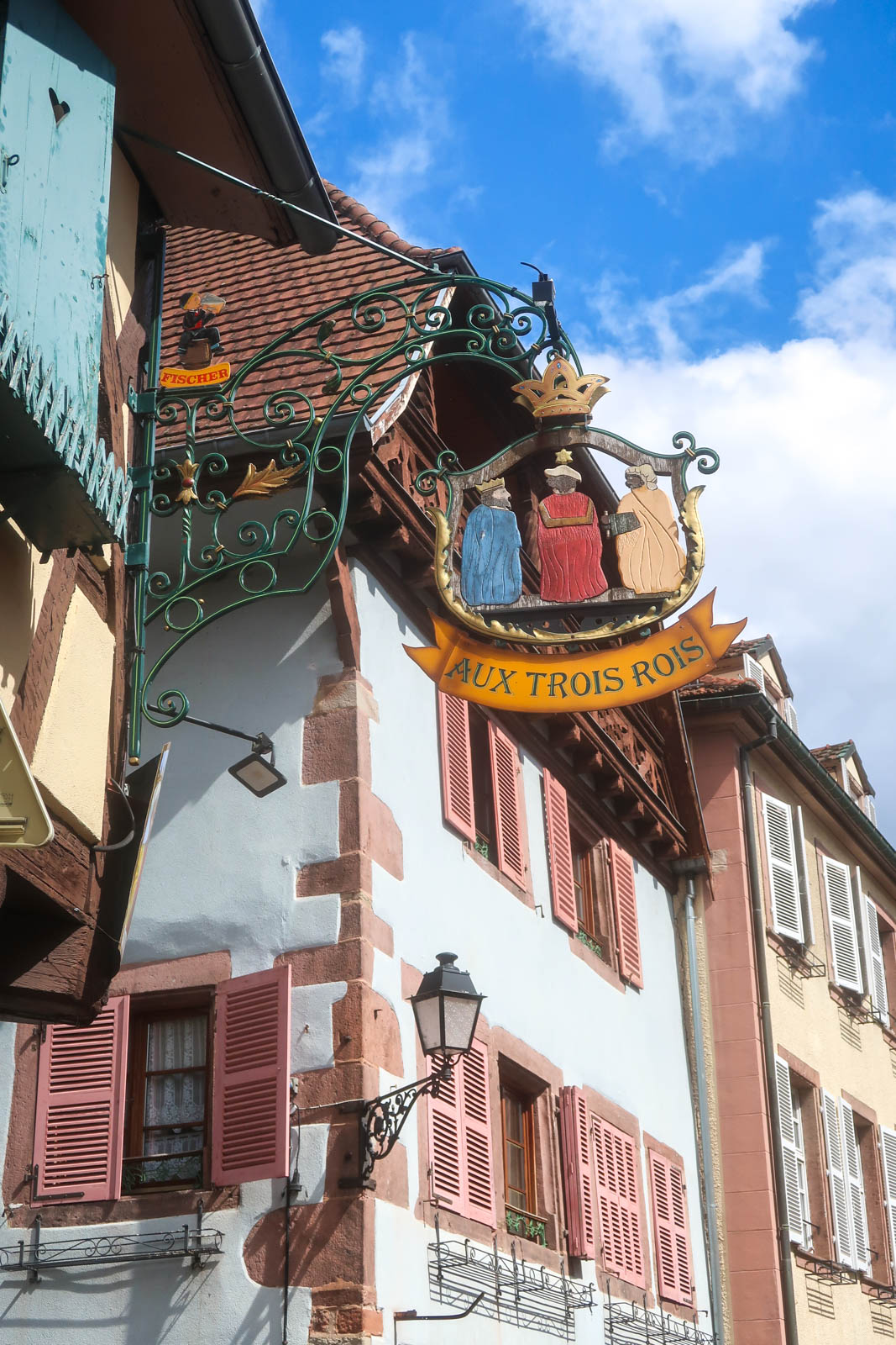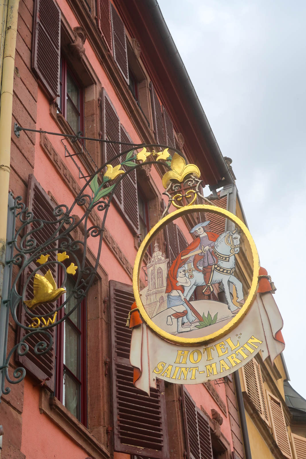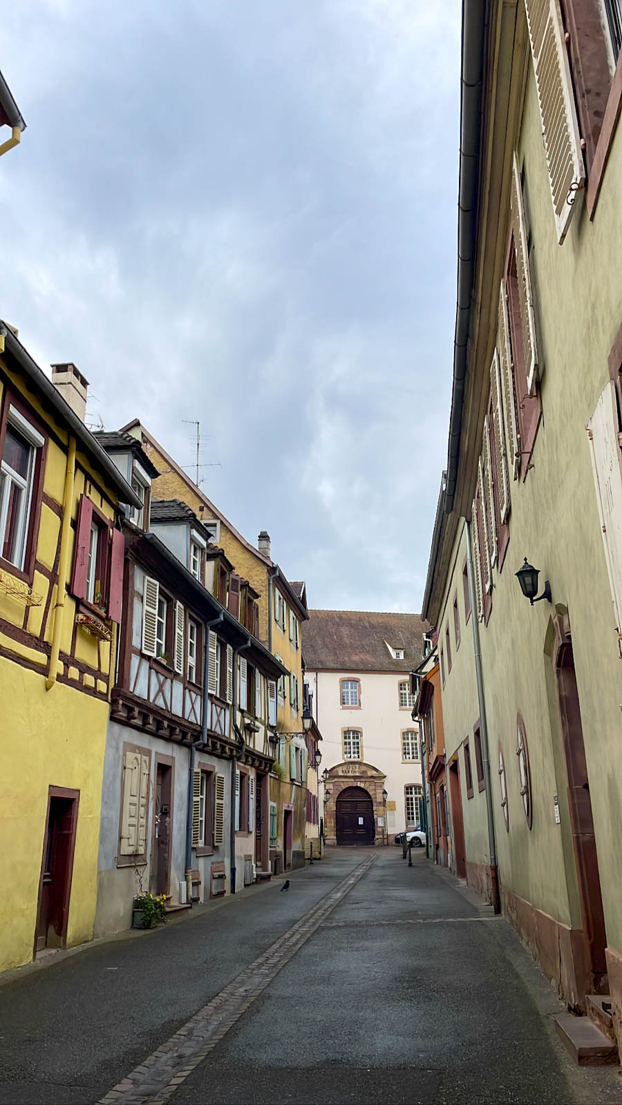 Les rues de Riquewihr alternent maisons à colombages du XVIe au XVIIIe siècles et maisons de style Renaissance. La ville est jolie mais la pluie et nos conditions de visite n’étaient pas optimales.