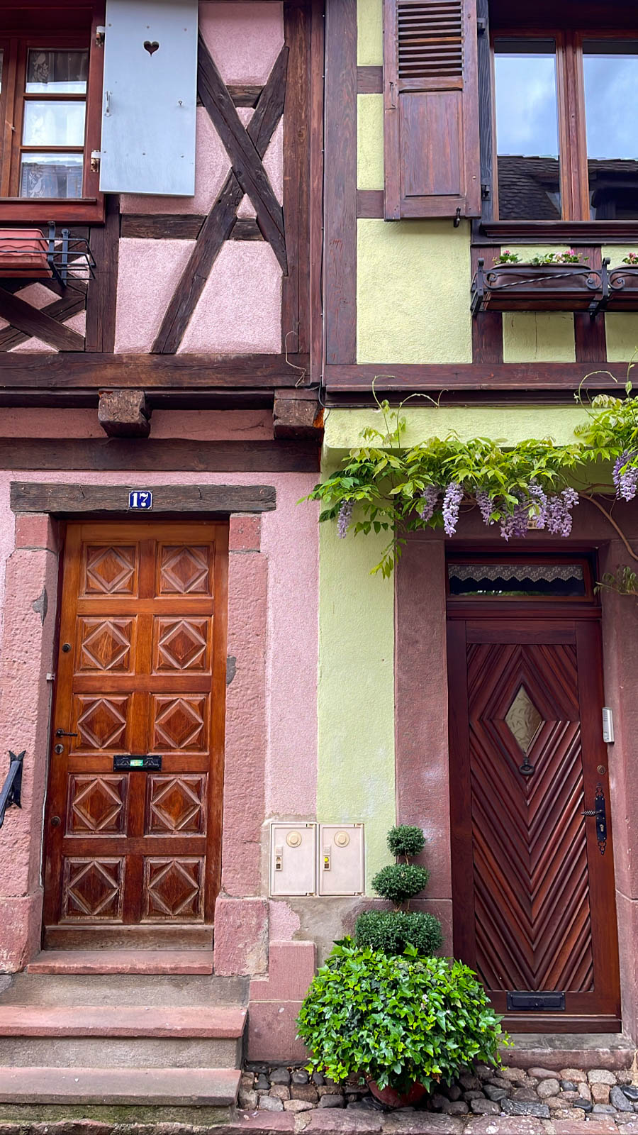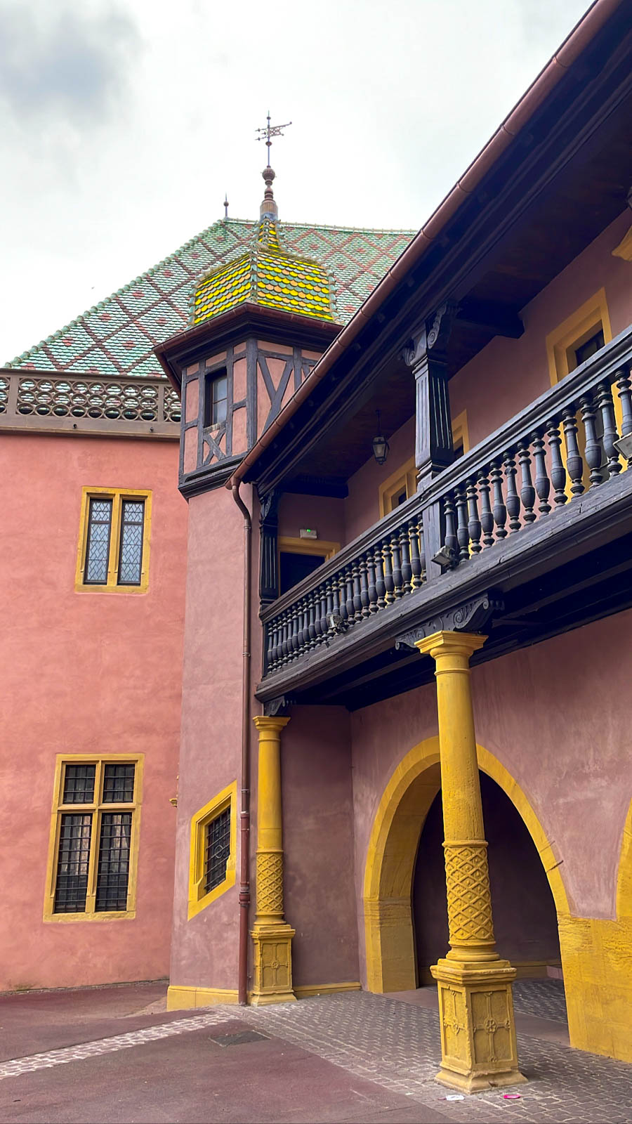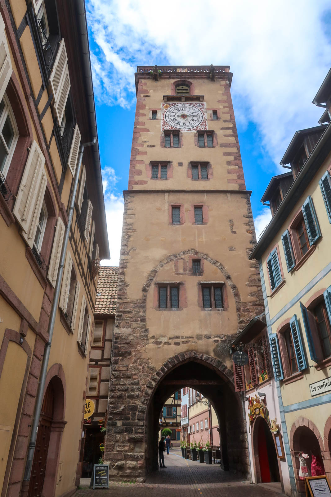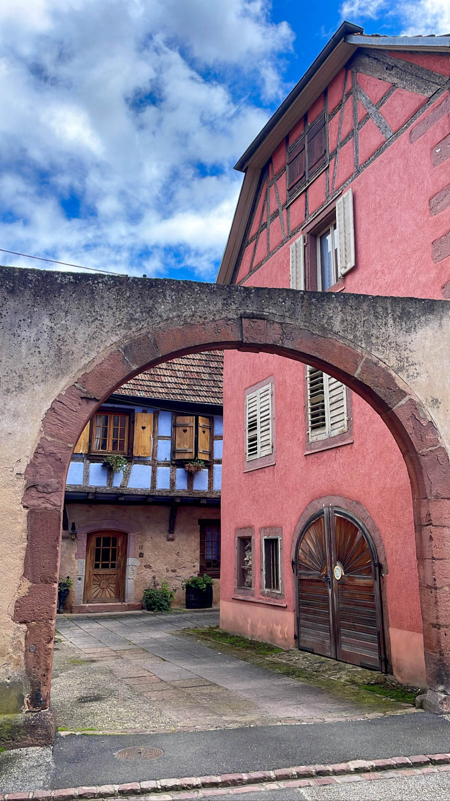 Les rues de Riquewihr alternent maisons à colombages du XVIe au XVIIIe siècles et maisons de style Renaissance. La ville est jolie mais la pluie et nos conditions de visite n’étaient pas optimales.