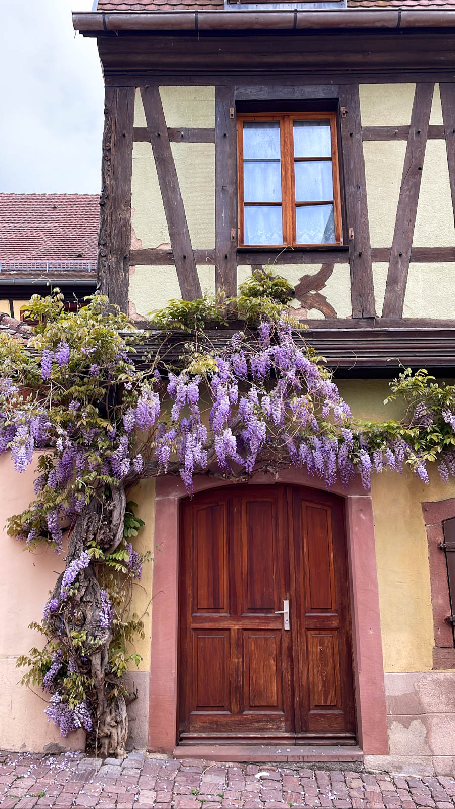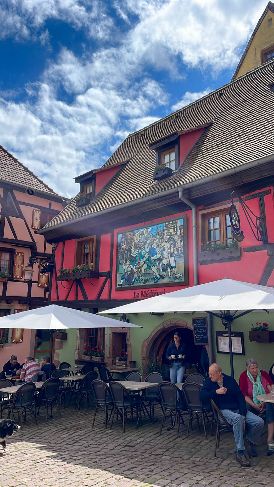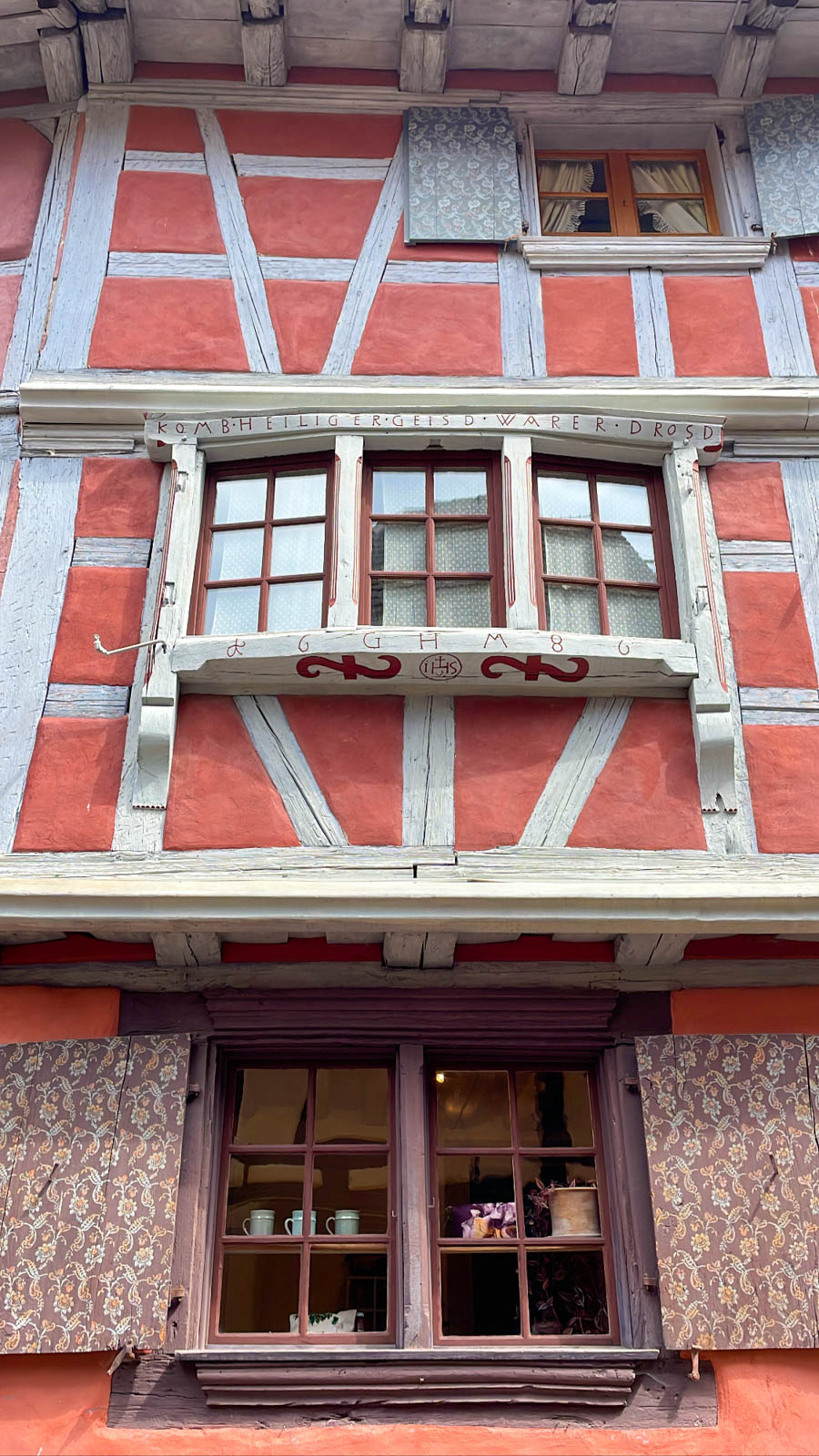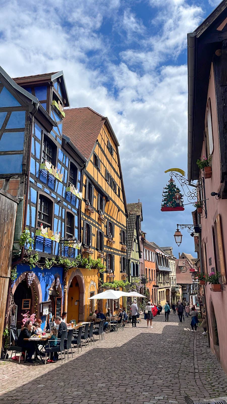 Les rues de Riquewihr alternent maisons à colombages du XVIe au XVIIIe siècles et maisons de style Renaissance. La ville est jolie mais la pluie et nos conditions de visite n’étaient pas optimales.