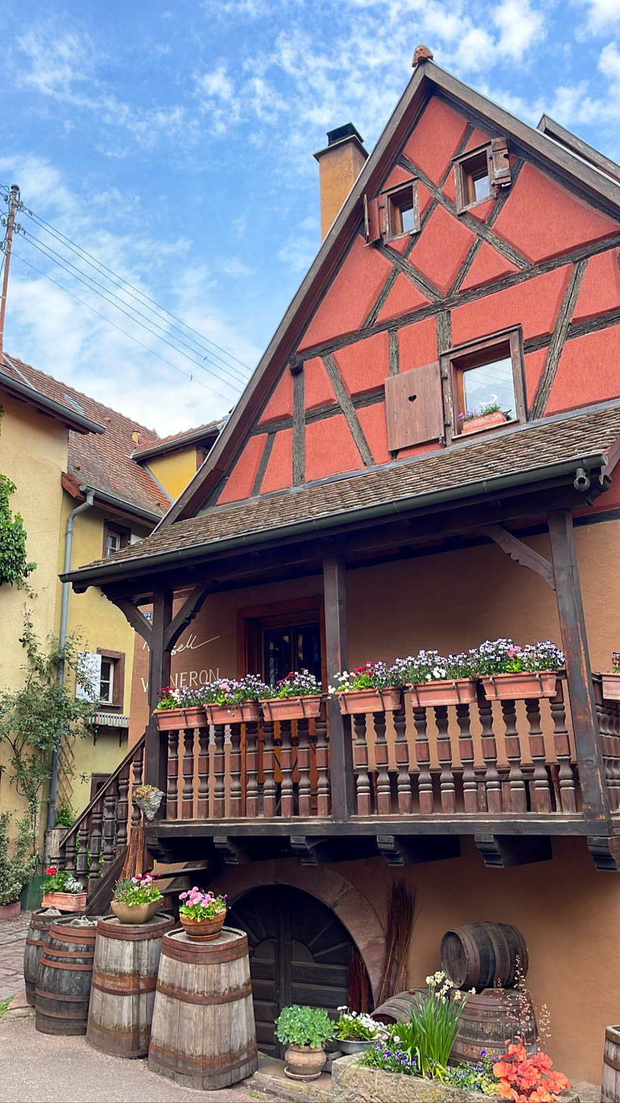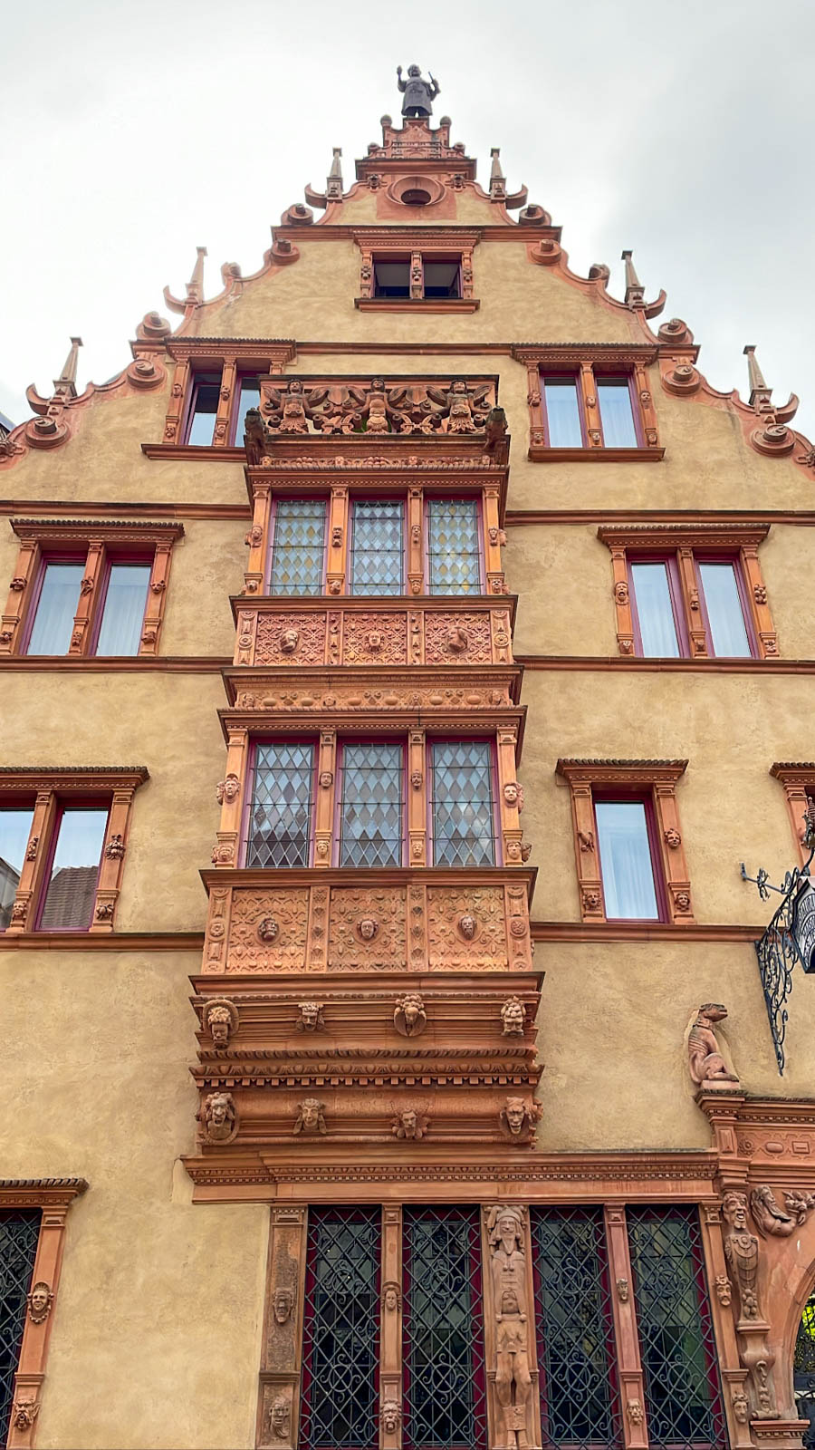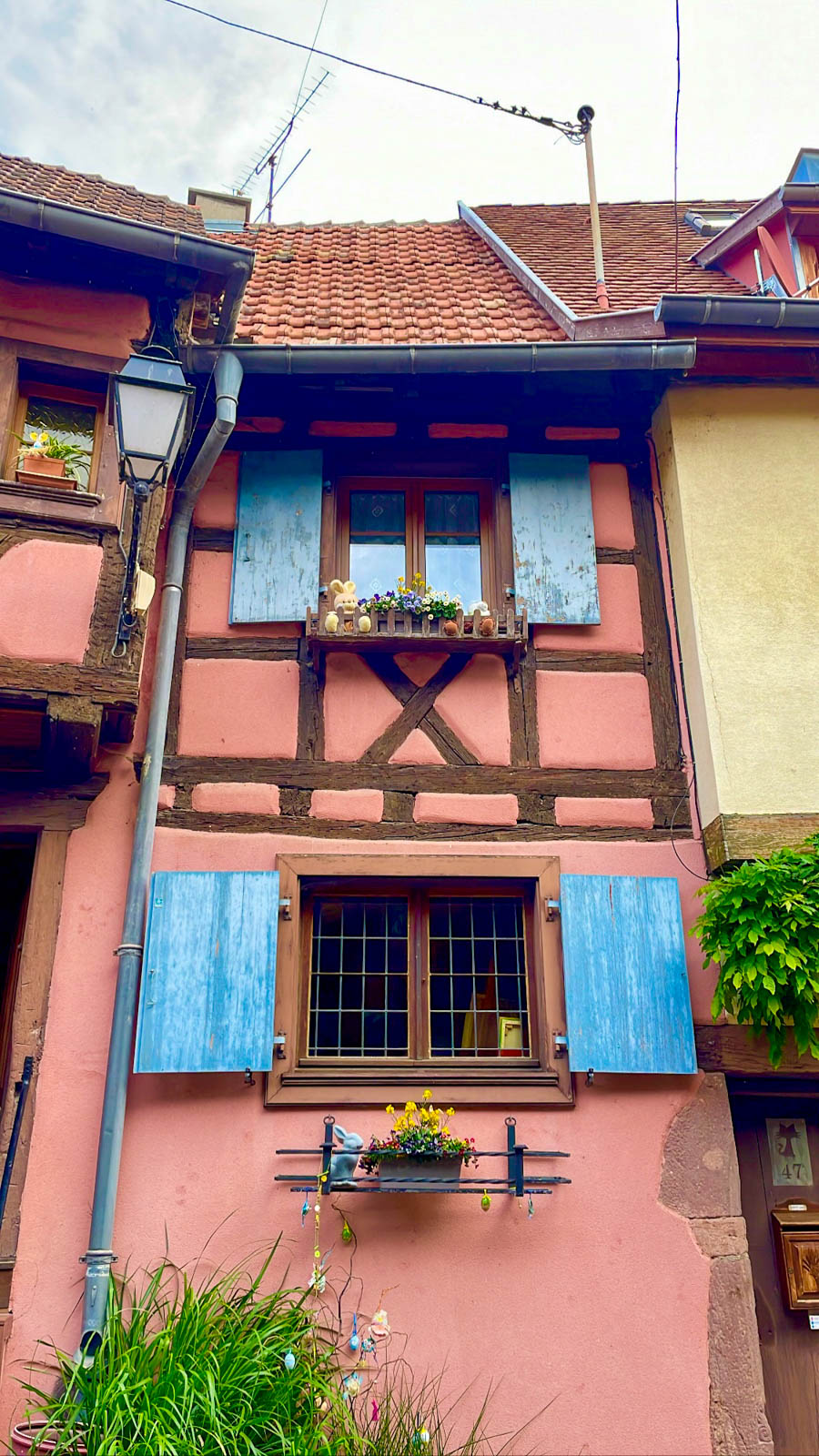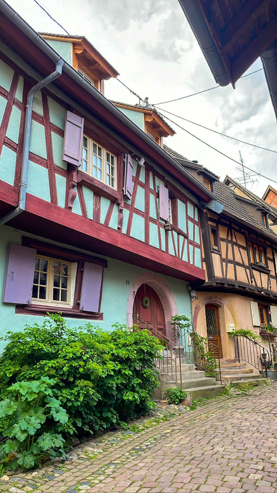 Les rues de Riquewihr alternent maisons à colombages du XVIe au XVIIIe siècles et maisons de style Renaissance. La ville est jolie mais la pluie et nos conditions de visite n’étaient pas optimales.