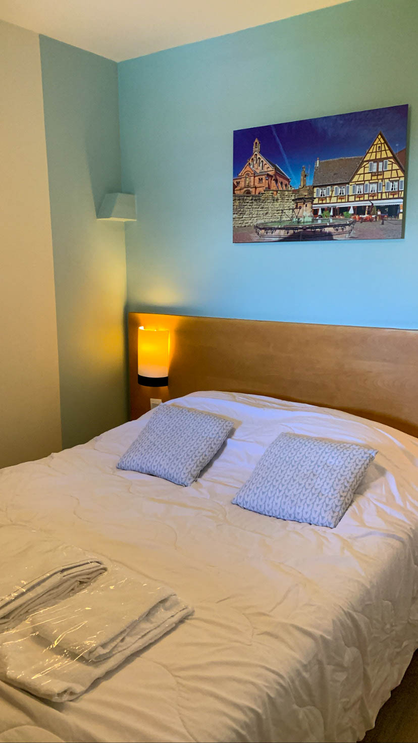 Avec un bébé ou même un enfant, nous trouvons que Pierre et vacances est souvent un choix idéal. Si nous aimons particulièrement les résidences Premium, nous avons fait un peu le tour dans un rayon de 3 à 4h de voiture autour de chez nous. Il reste des résidences non découvertes mais dans des destinations que nous connaissons malgré tout à (bien) connaître… Nous avions envie de changer un peu de décor et sommes d’ailleurs ravis d’avoir choisi l’Alsace pour nos vacances. C’est ainsi que nous avons loué un appartement « 5 personnes – 1 chambre – Vue jardin » à la résidence Le Clos d’Eguisheim, située à proximité à pieds d’Eguisheim.