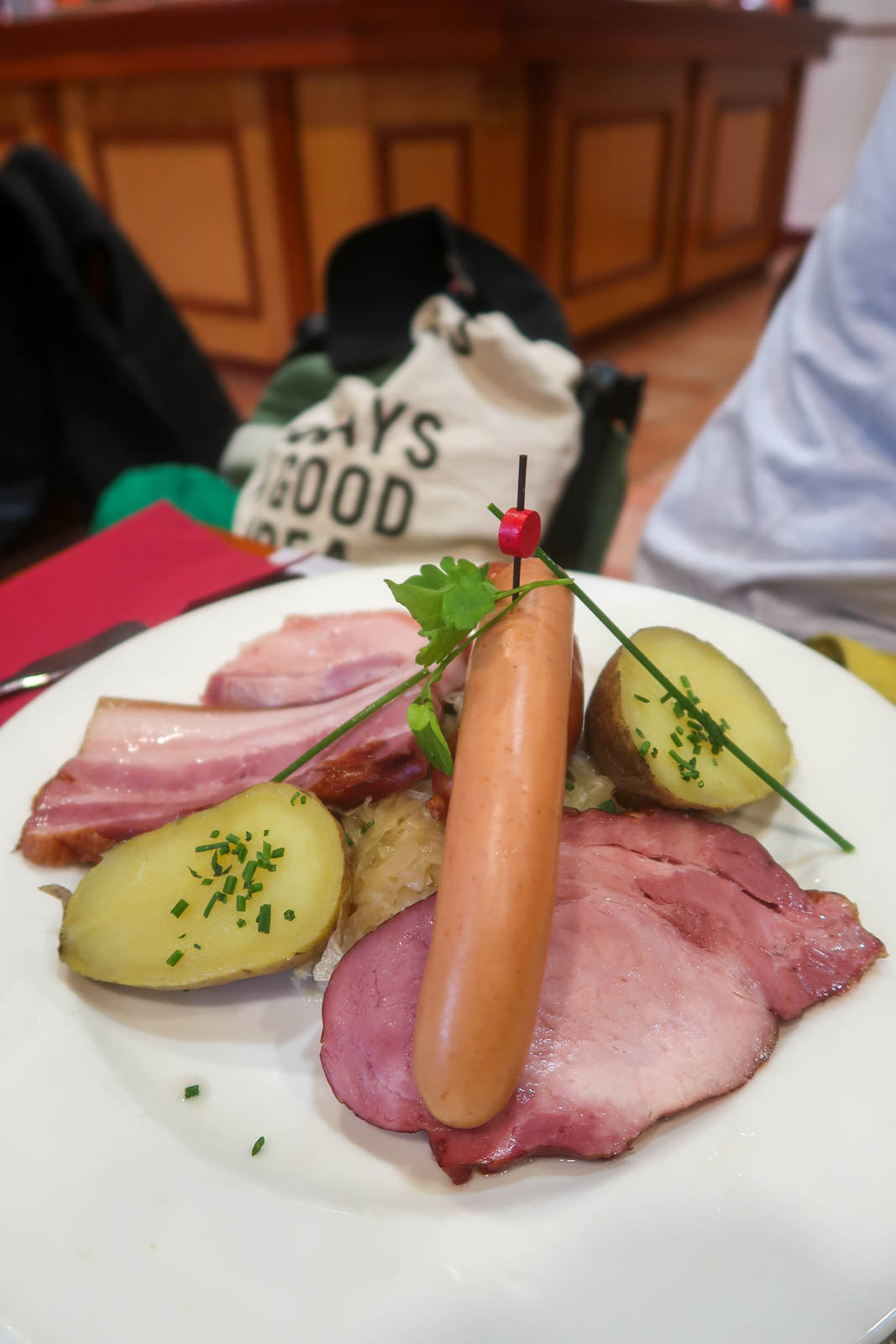 Côté boissons, j’ai dégusté un jus de raisin artisanal (2,80€), bien apprécié, tandis que Monsieur a opté pour un verre de pinot gris (3,70€). Globalement, en Alsace, nous avons trouvé que les boissons au restaurant étaient bien moins chères qu’à Paris, ce que nous n’avons pas forcément noté pour les plats. Une bonne surprise !