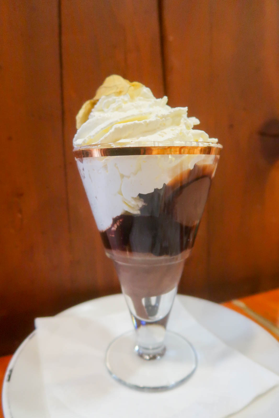Nous avons mangé sur place, en réservant auparavant, à la Taverne. J’ai opté pour un virgin mojito (4,50€) et une tarte flambée au munster (14€). Monsieur a choisi de déguster une choucroute (22,90€). En dessert, le chocolat liégeois (7€) était à la hauteur de sa promesse !