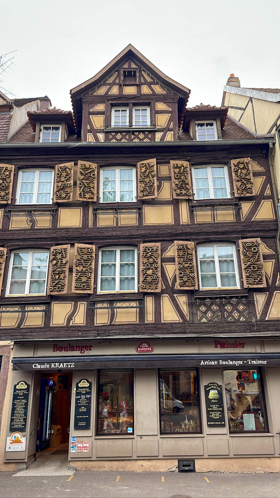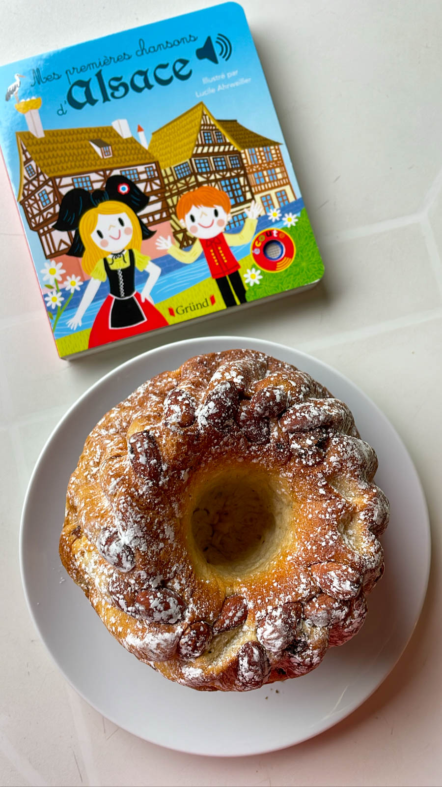 Des vacances en Alsace sont l’occasion de déguster au minimum un kouglof ou kougelhopf, célèbre brioche à la forme reconnaissable. À Colmar, nous en avons acheté un chez Claude Kraetz. Bien agréable !