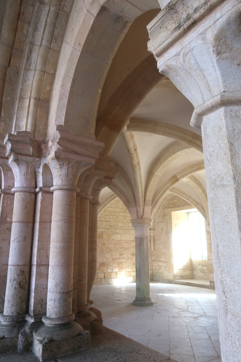 L’abbaye de Noirlac, à 40 kms au Sud de Bourges, a été « construite à partir de 1150 par un petit groupe de moines venus de Clairvaux ». Au XIXe siècle, elle a été une manufacture de porcelaine, un sort plus enviable que bien des sites transformés en prisons ! L’abbaye est bien préservée. Nous l’avons visitée dans de très bonnes conditions et en autonomie : même la lumière était au rendez-vous. Une offre de restauration existe à l’abbaye mais n’était plus proposée début octobre. Snif !