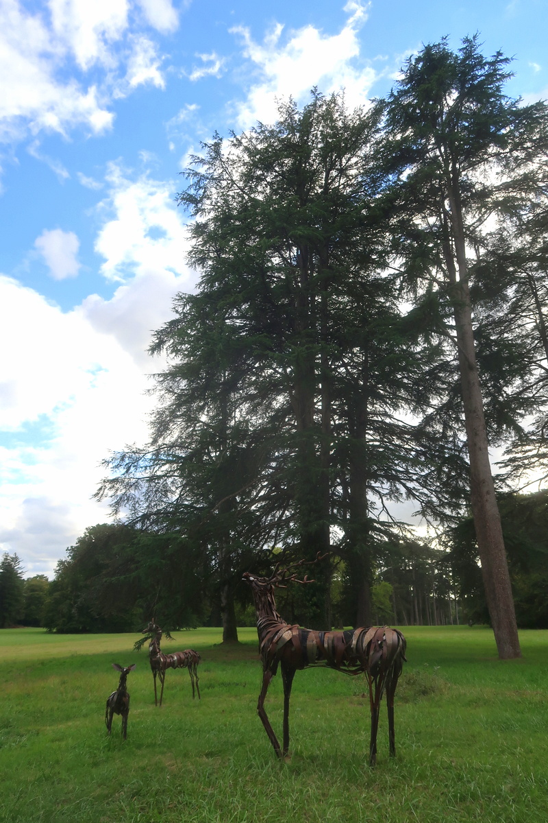 Hop, nous voici dans l’Indre – en Berry, donc – à la découverte d’Azay-le-Ferron. Après quelques péripéties (par exemple : un car qui ne veut pas se mettre sur le côté de la route pour nous laisser passer au bout d’une route à sens unique…), nous sommes arrivés à l’intérieur du château à 16h35 pour une fermeture à 17h30. Manque de chance : c’étaient les intérieurs que nous avions envie de découvrir et la dernière visite guidée était à… 15h45 mais nous ne pouvions le savoir que sur place. Nous avons donc pris simplement des billets pour découvrir le parc (3,50€), où arbres et sculptures nous attendaient mais nous sommes restés sur notre faim…