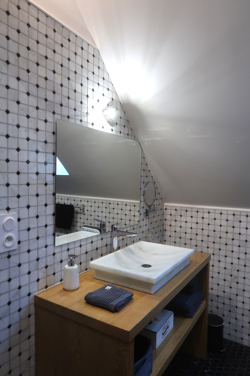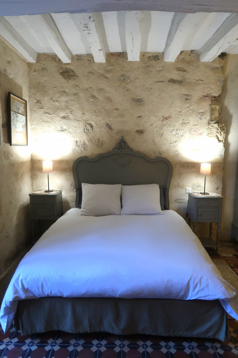 Nous avons passé une nuit dans l’une des chambres d’hôtes du domaine de la Crapaudine, une très jolie adresse qui cache également un grand jardin. Sensibles à sa décoration aboutie, nous avons séjourné dans la chambre La Pifaudière. Il ne m’a manqué que les chaussons pour marcher sur le carrelage à la saison fraîche !