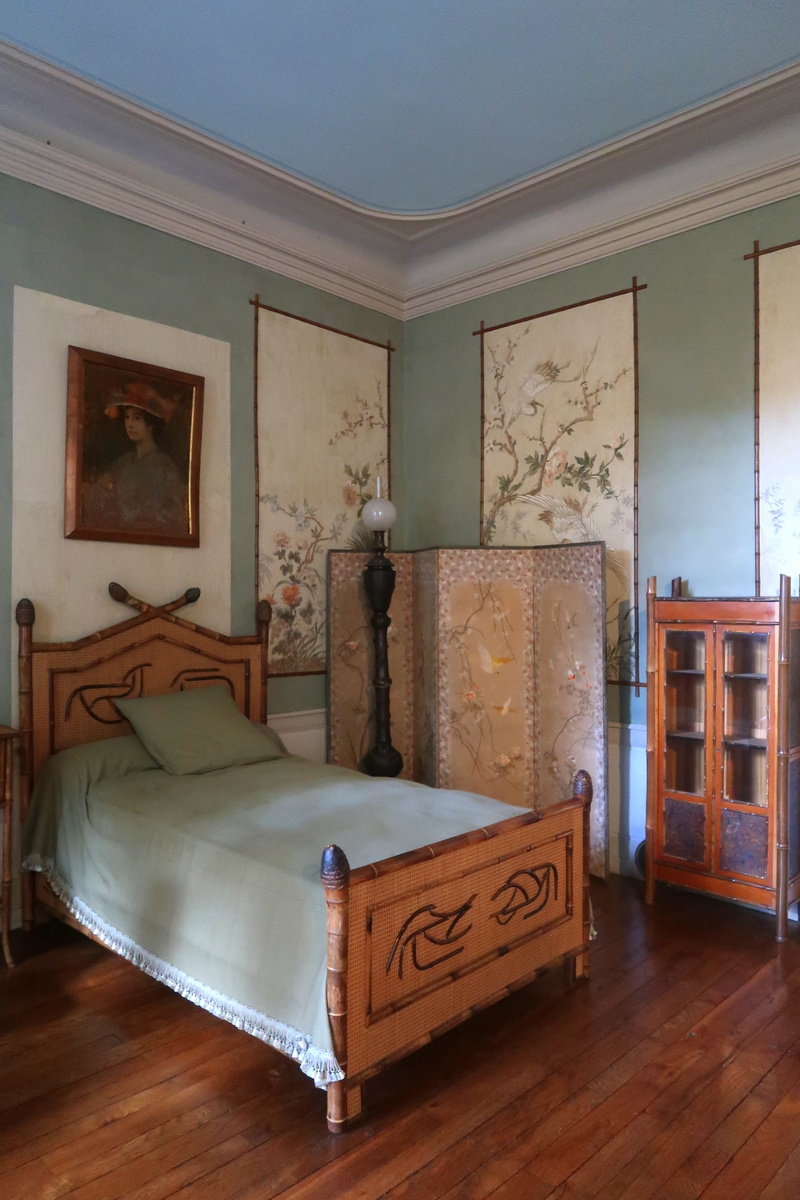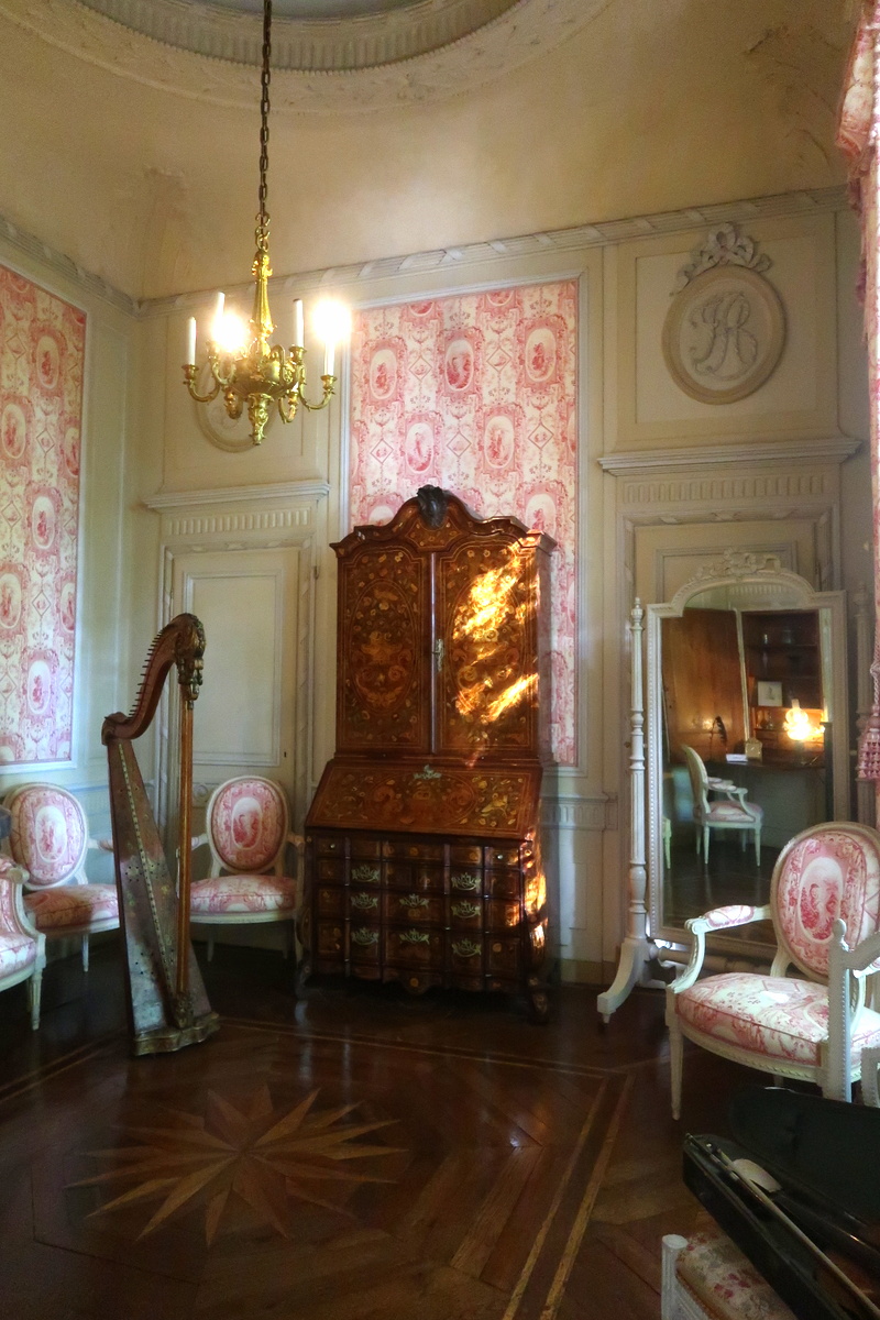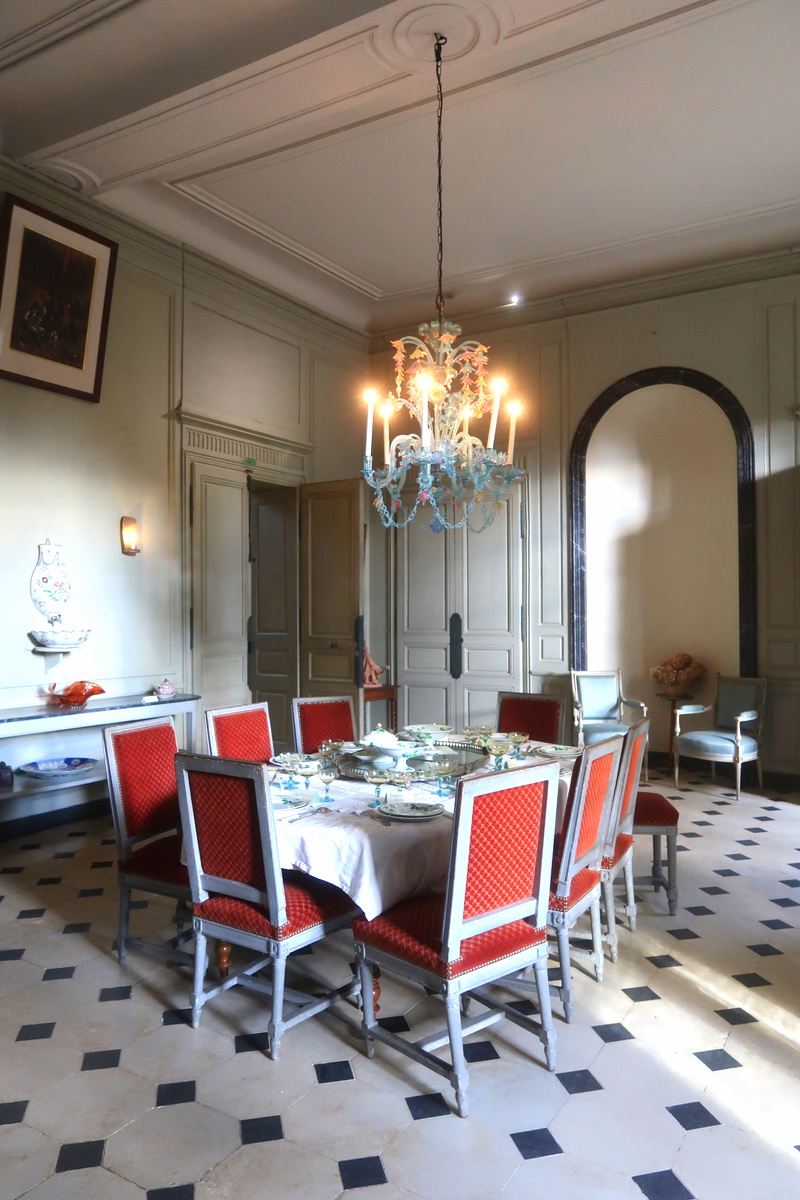 - sur place, le fonctionnement était déroutant : nous avons tout d’abord visité une salle d’exposition dédiée au Grand Meaulnes extérieure au château mais comme venue du passé. Puis la visite n’a été organisée que pour nous deux avec un bénévole comme guide. Le château est meublé de pièces anciennes et tout est intéressant et étonnant… À l’entrée de nombreuses pièces, l’on glisse nos pieds dans de grands chaussons pour faire le tour. Je ne suis pas sûre de bien réussir à traduire notre impression sur place mais c’était décalé et inattendu !