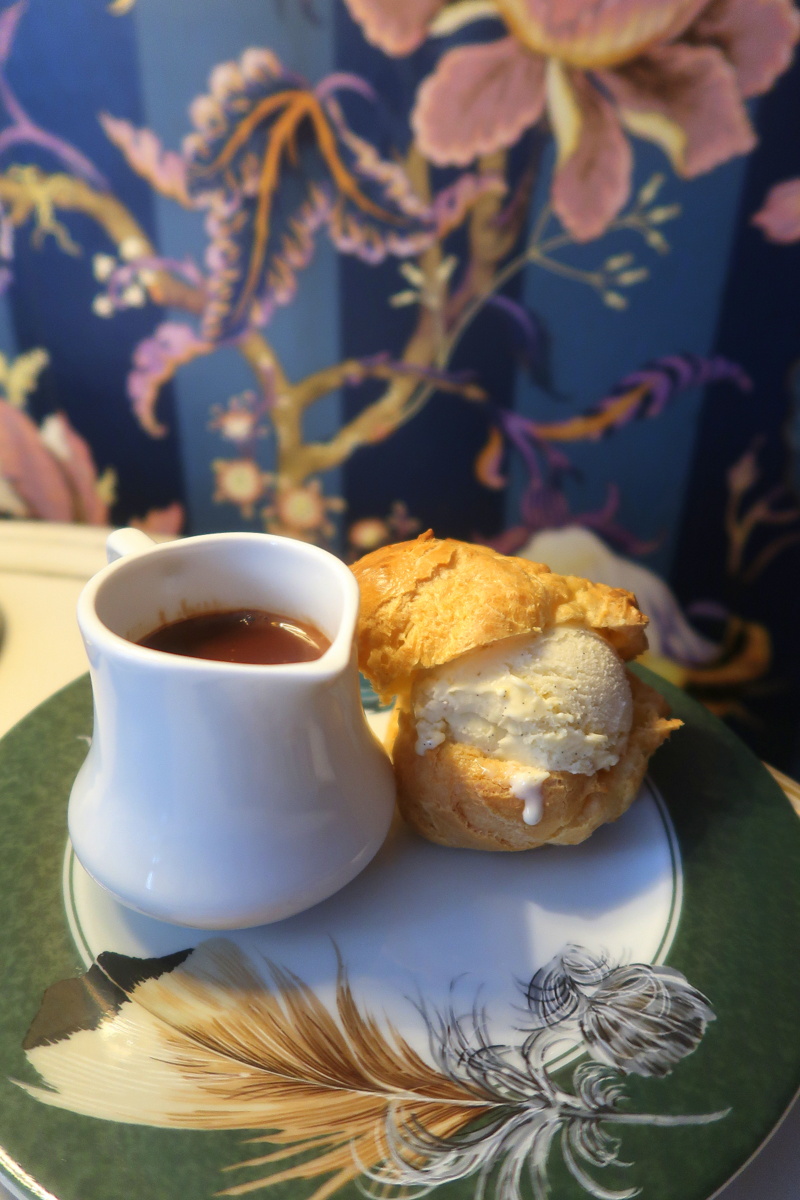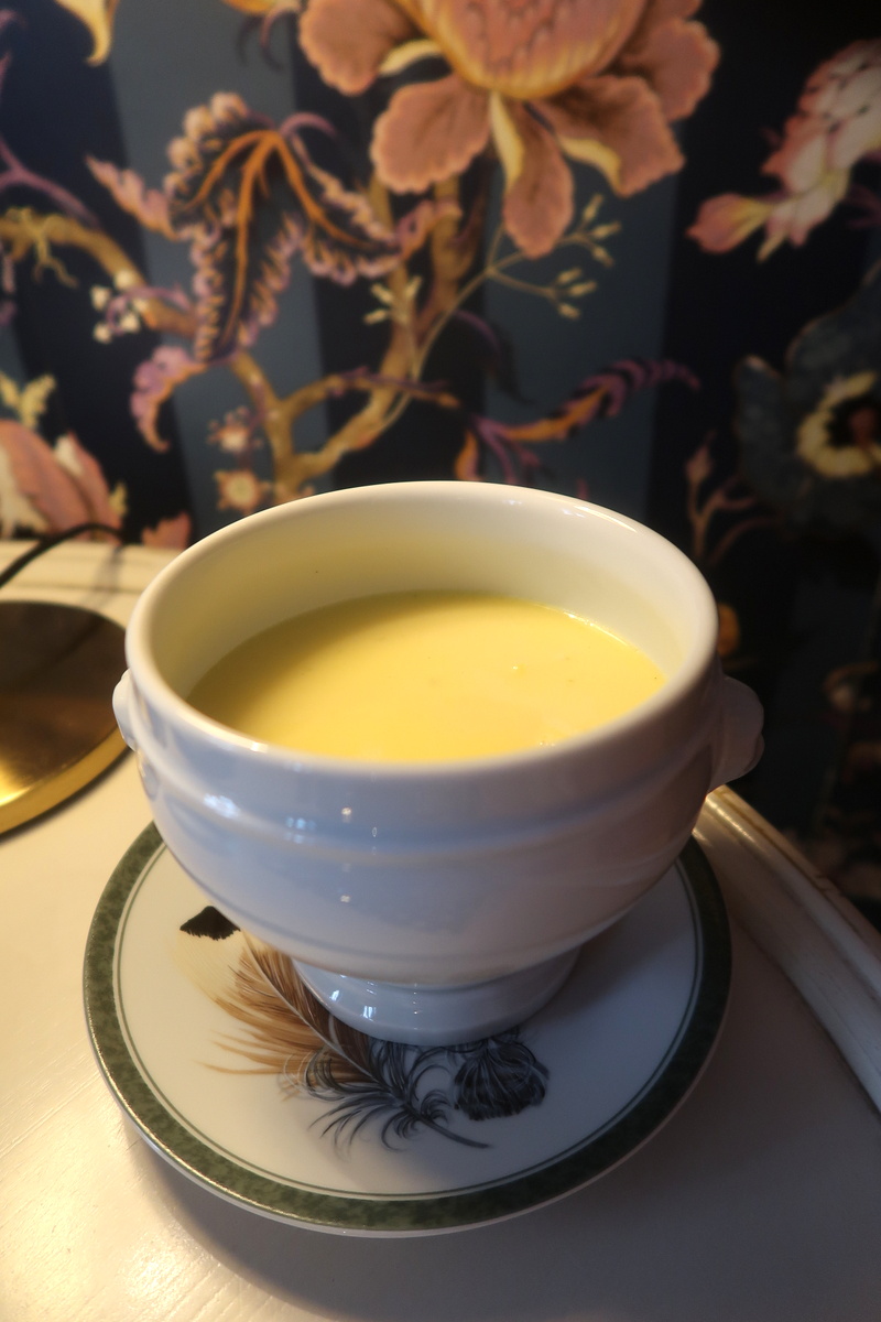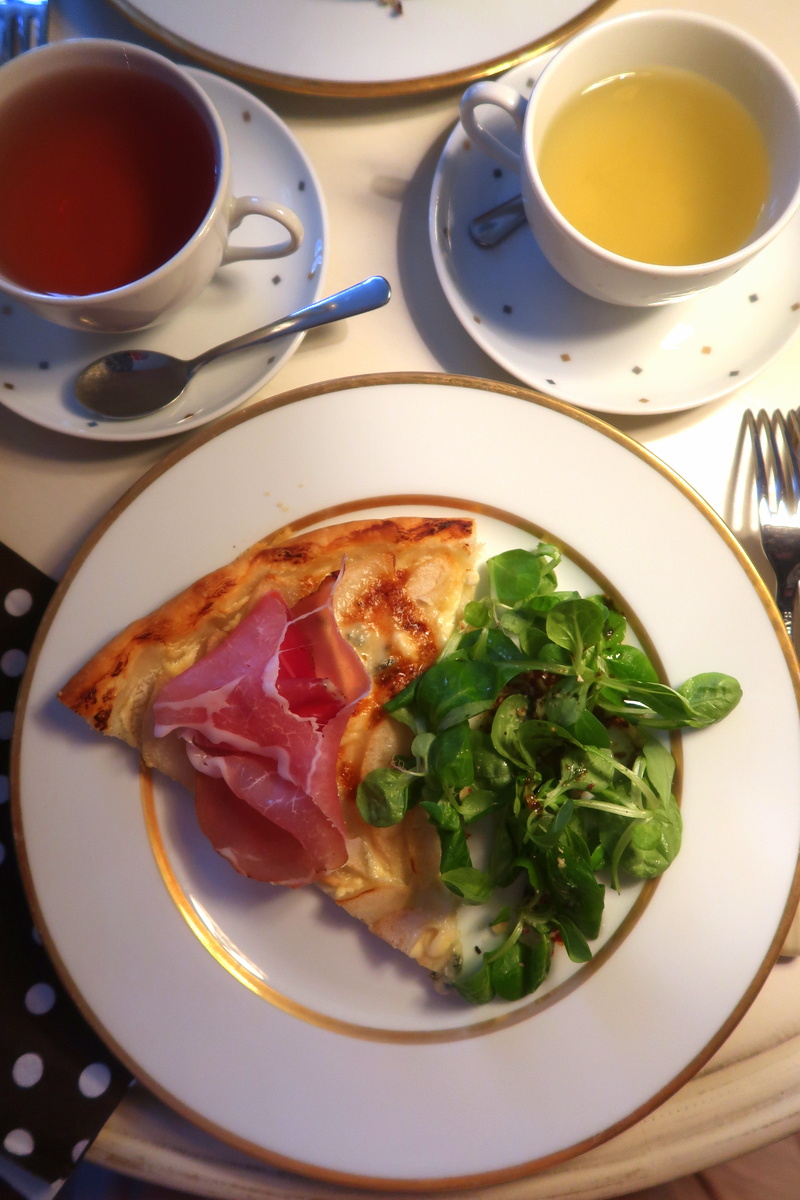 À Bourges, nous avons découvert une bonne adresse, à l’ambiance feutrée. Il s’agit du salon de thé Philomène. La formule déjeuner était une surprise, moyennant 13,90€ par personne, pour une composition de saison, un dessert, un thé ou un café. Ce jour-là, l’on nous a servi un bouillon de parmesan et ses ravioles puis une tarte fine poire, gorgonzola, jambon, mâche et noisettes. Un délicieux souvenir !