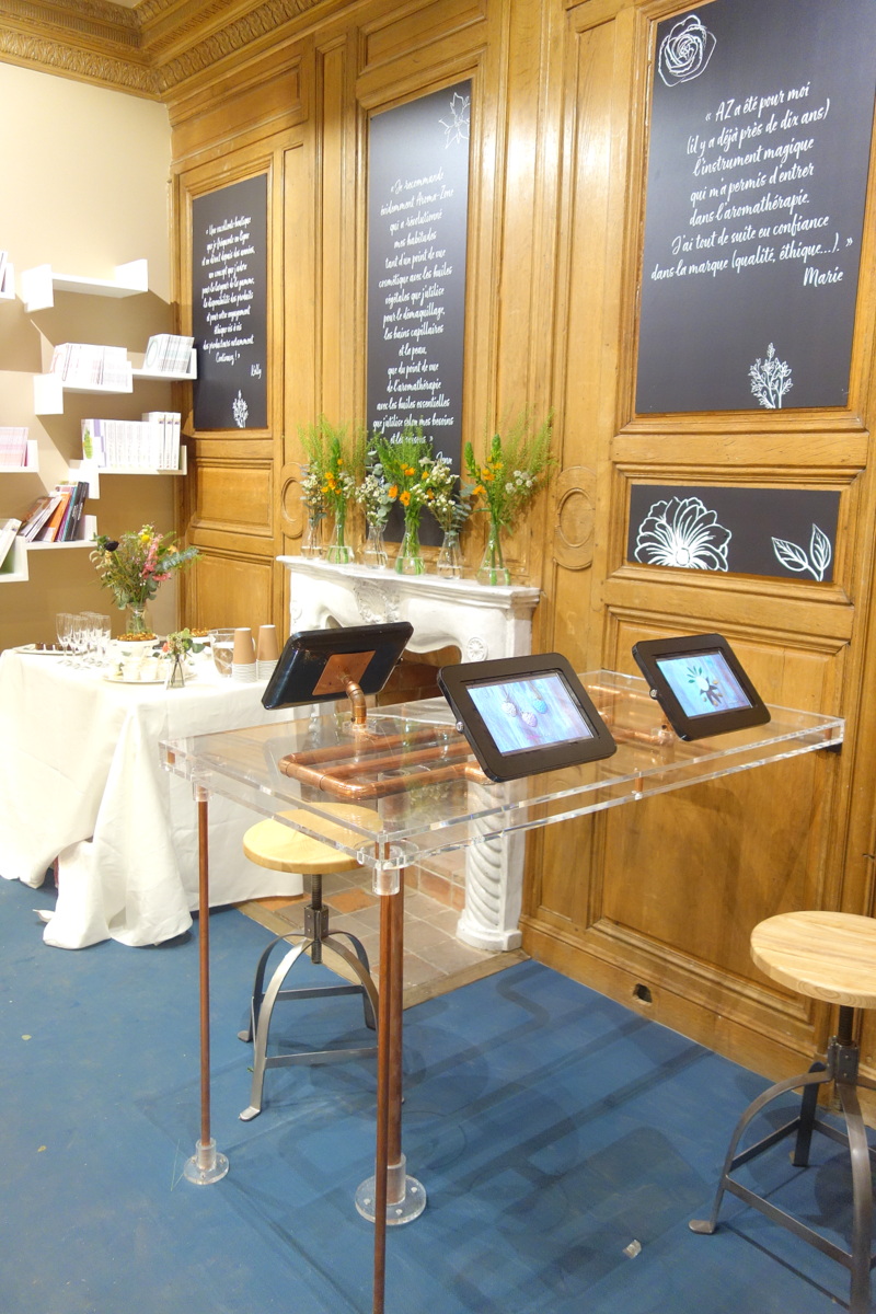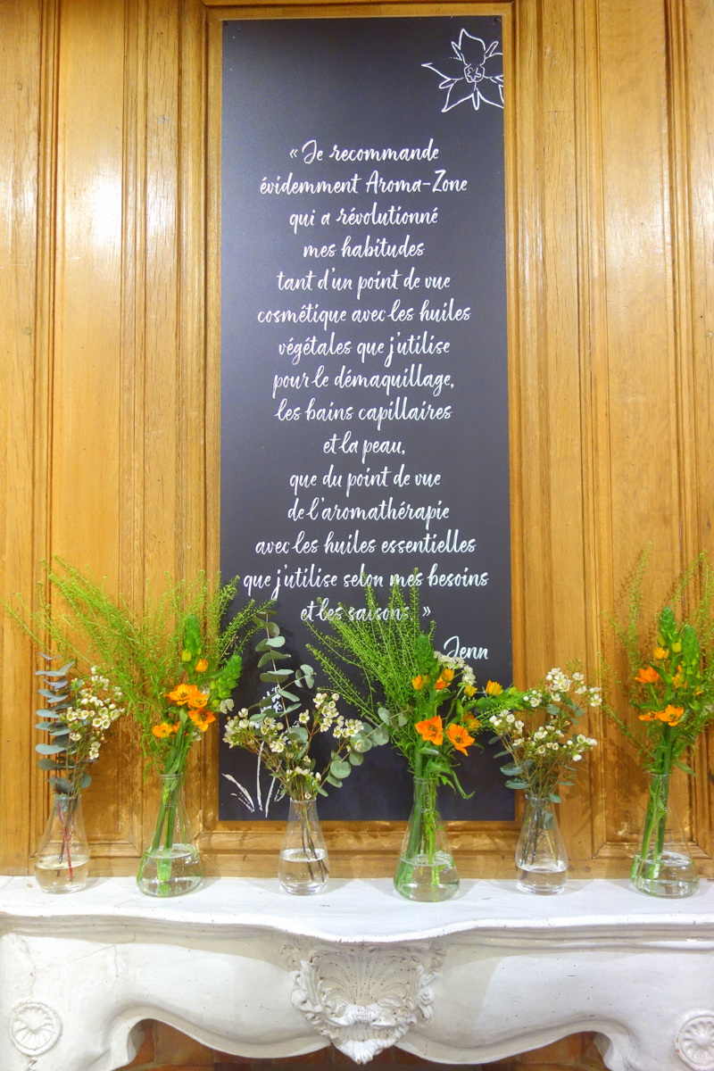 Passer les portes d’Aroma-Zone, c’est découvrir de nombreux flacons, contenants et produits. L’idée est d’accompagner chaque client dans cet univers. En effet, au début, les possibilités qui semblent infinies pourraient décourager un peu. Heureusement, en se faisant conseiller et en lisant les guides, on peut entrer pas à pas dans ce monde du soin et de l’hygiène naturels. J’avoue qu’il m’arrive encore d’acheter une huile essentielle et de ne pas bien maîtriser son utilisation mais les différentes ressources à ma disposition me permettent de m’initier peu à peu. Dans la nouvelle boutique Aroma-Zone, des experts peuvent conseiller ceux qui en ont besoin dans chaque rayon : pharmacienne, naturopathe, formulatrice en cosmétiques, etc.