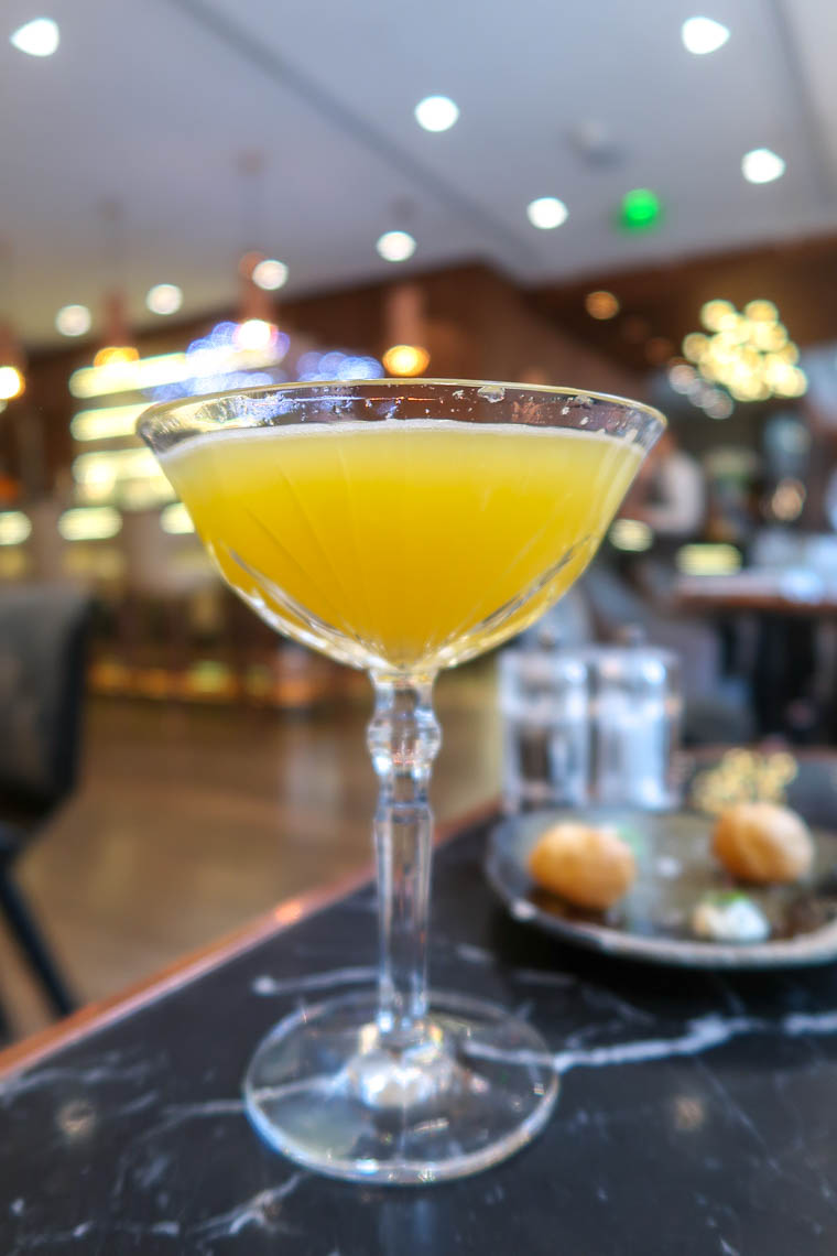 Monsieur s’en est remis à l’équipe du restaurant pour le choix de son cocktail. C’est un « Voyage d’Odette » qui lui a été servi. Ce cocktail signature se compose, entre autres, de vodka et de fruit de la passion. Il est léger, frais et parfumé. Monsieur l’a trouvé parfait pour introduire notre déjeuner en ce lieu calme, apaisant et serein.