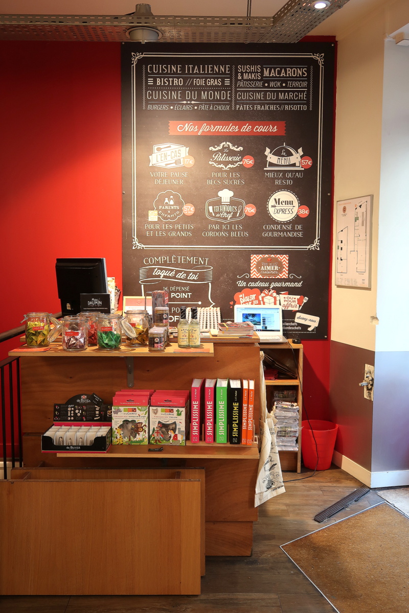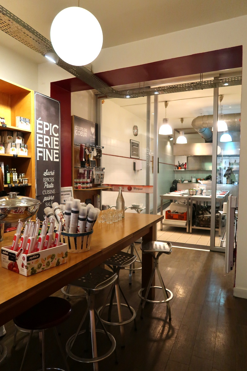 L’atelier des Chefs de Paris Saint-Lazare est installé dans un ancien bar à vin. Il est principalement composé de deux espaces : le premier est celui qui accueille la table d’hôtes et une partie boutique, le second est la cuisine.