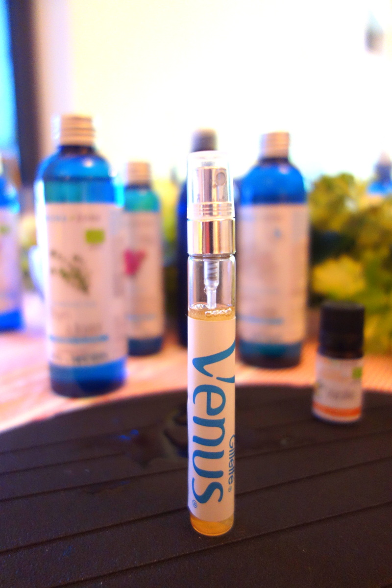 Pendant la soirée, chacune a pu se faire masser le bas des jambes et les pieds. Non seulement c’était très agréable mais, en plus, cela nous a permis de nous rendre compte du rafraîchissement vraiment longue durée que le gel externe procure.