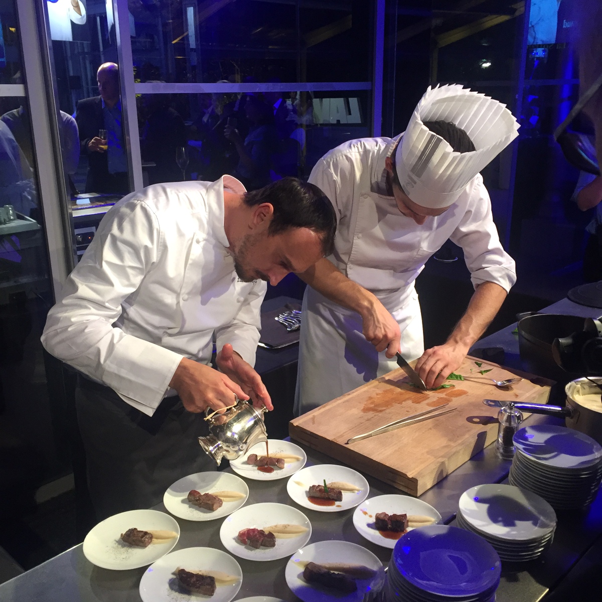 Lors de la soirée de la gastronomie, les sept chefs ambassadeurs étaient présents. Chacun a cuisiné un plat à base de café.
