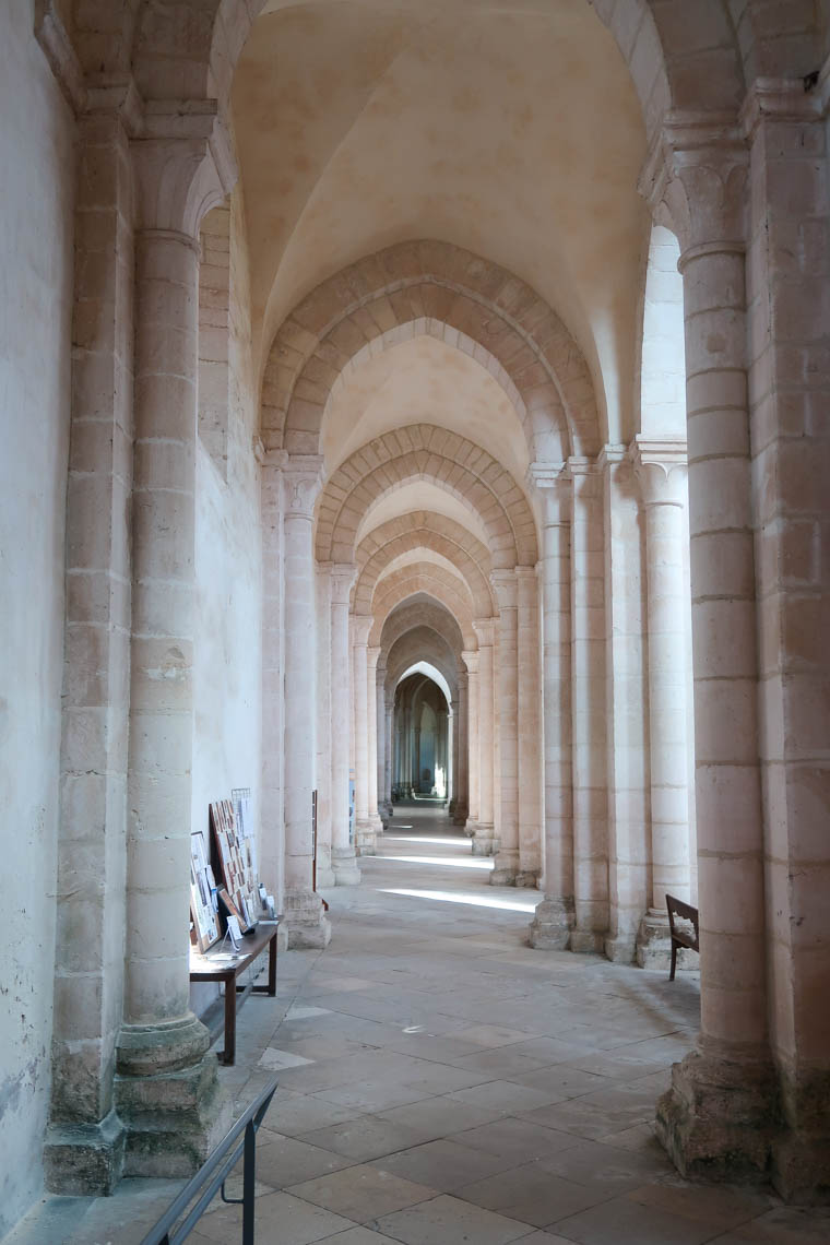 Dans l’Yonne, à 20 minutes d’Auxerre, nous nous sommes arrêtés à l’église abbatiale de Pontigny, un magnifique monument construit en pierres blanches. Les Cisterciens se sont implantés sur place en 1114. Avec ses 4000m² au sol et ses 120m de long, Pontigny est la plus grande abbatiale cistercienne au monde ! Les voyageurs auront peut-être des souvenirs de la Mezquita en tête en la parcourant… Majestueuse !
