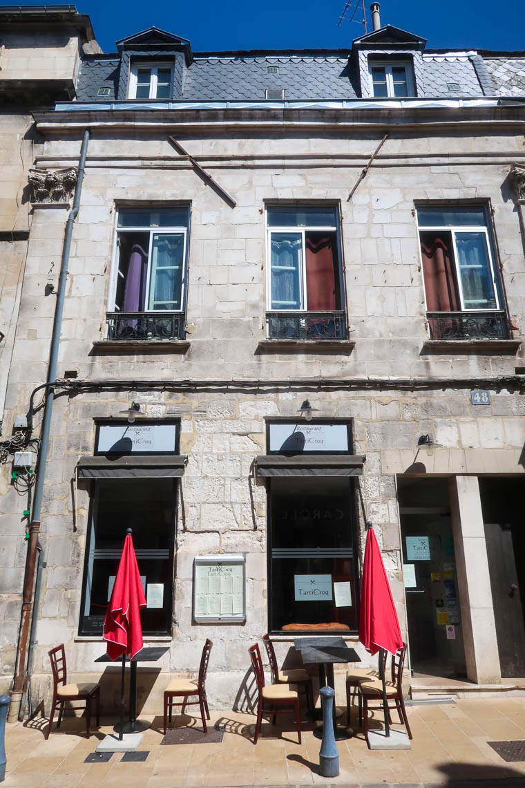 Nous avons déjeuné chez Tarti Croq et avons réservé la veille. Si nous n’avions pas repéré cette adresse, nous ne l’aurions probablement pas découverte par hasard mais nous étions vraiment contents de notre choix. Si les lieux ne paient pas de mine, on nous a servi de belles assiettes et des recettes toutes différentes.