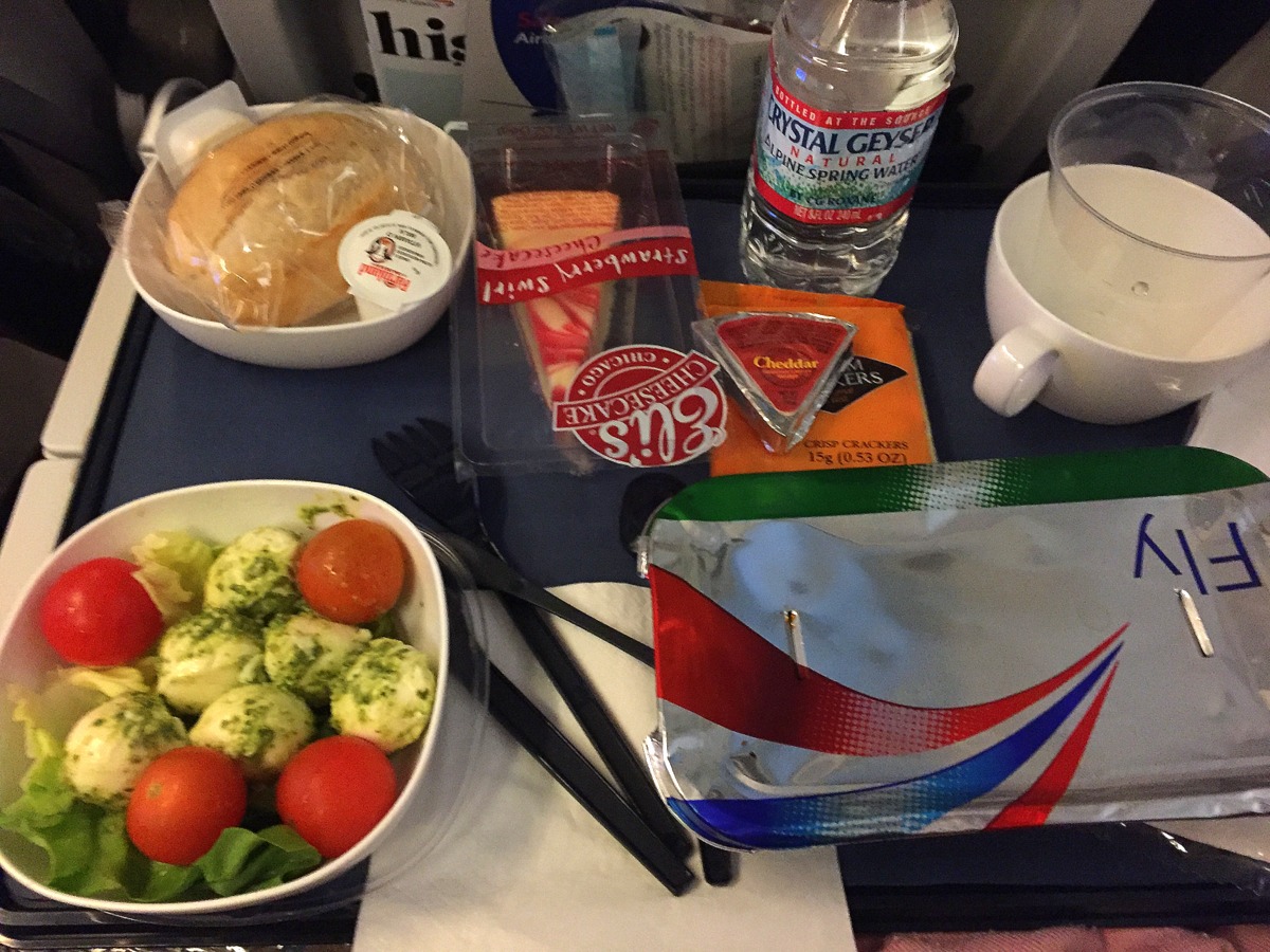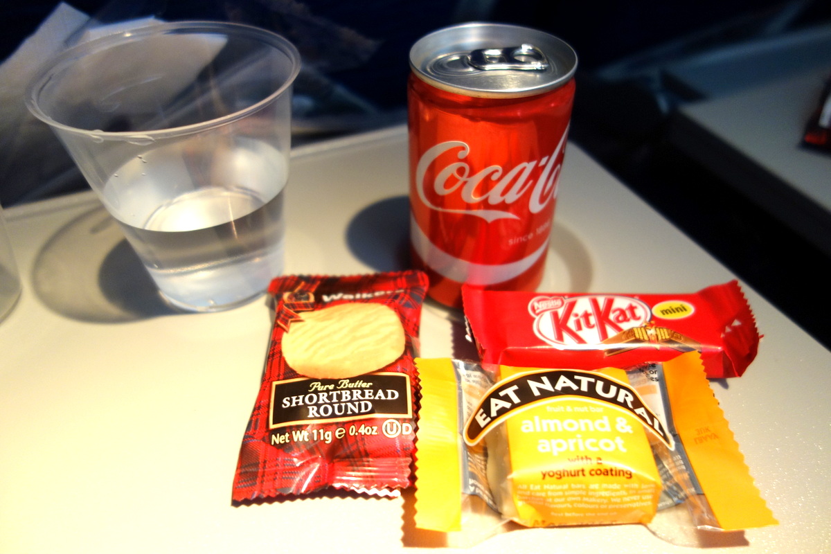 British Airways nous a donné satisfaction. Notre plus grand regret – on est bien peu de choses – est lié au nombre extrêmement limité – quatre – de films en français lors du trajet aller. Côté repas, ce que l’on nous a servi était tout-à-fait correct. Les emballages étrangers avaient le charme des vacances.