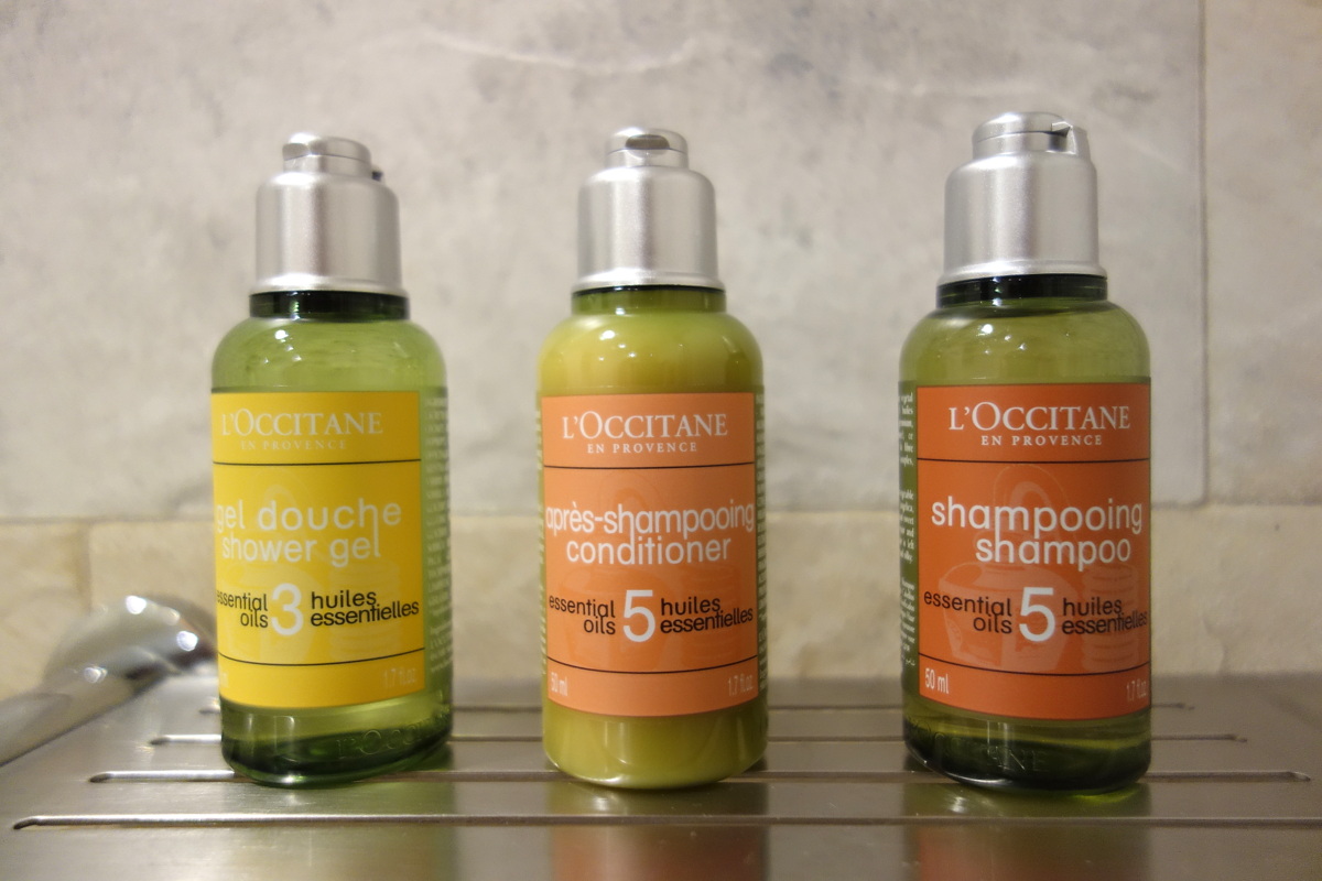 Notre chambre était grande et confortable. Tout était dans les détails : la belle papeterie, les produits L’Occitane, etc. La chambre double nous a coûté 178€ la nuit.