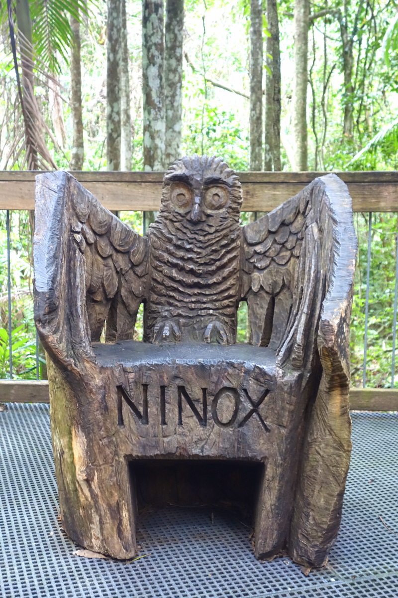 Trois heures de route vers le Nord plus tard, nous sommes arrivés à Port Macquarie. Nous sommes allés nous promener sur les chemins aménagés du Sea Acres Rainforest Boardwalk. Le tour, en forme de boucle, représente 1,3 kms. C’est assez décevant lorsqu’on a randonné dans les Blue mountains ou dans toute autre forêt tropicale des environs. Nous espérions voir des animaux : il n’en a rien été (en même temps, si les cris d’un enfant particulièrement bruyant nous y ont fait fuir, qu’en est-il des animaux ?). Le tour coûte 9$ par personne.