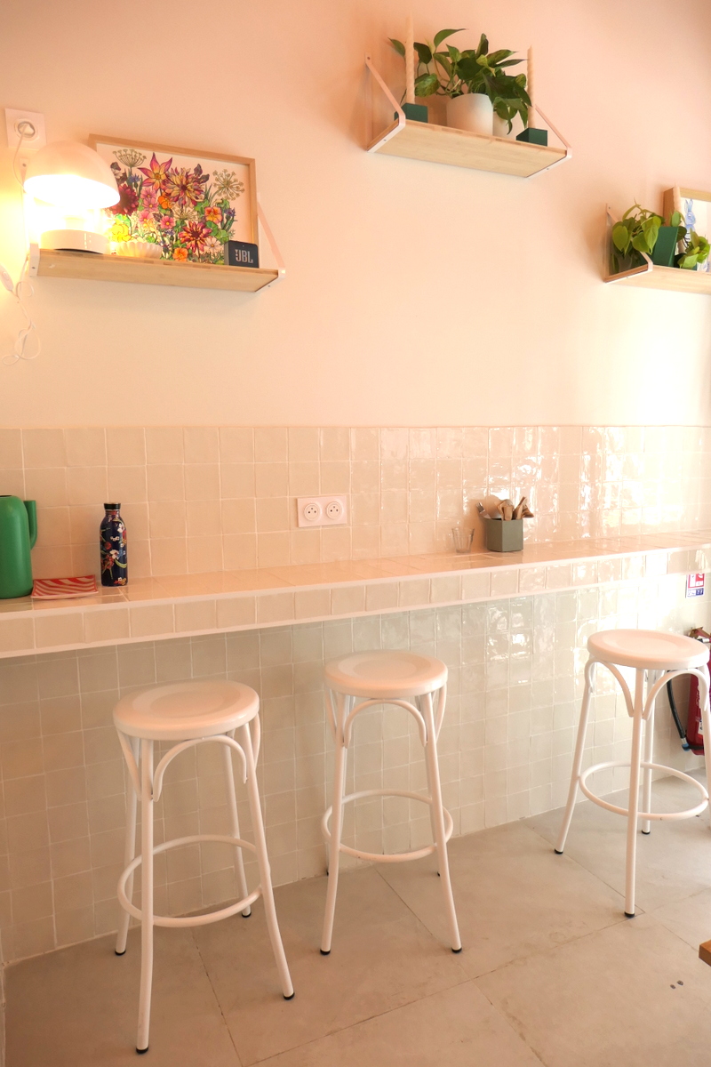 S’il est idéal de commander à emporter, Rosata a sur place une table pour deux et un comptoir.