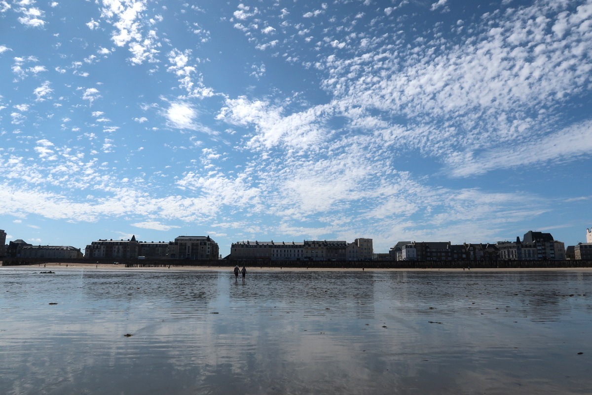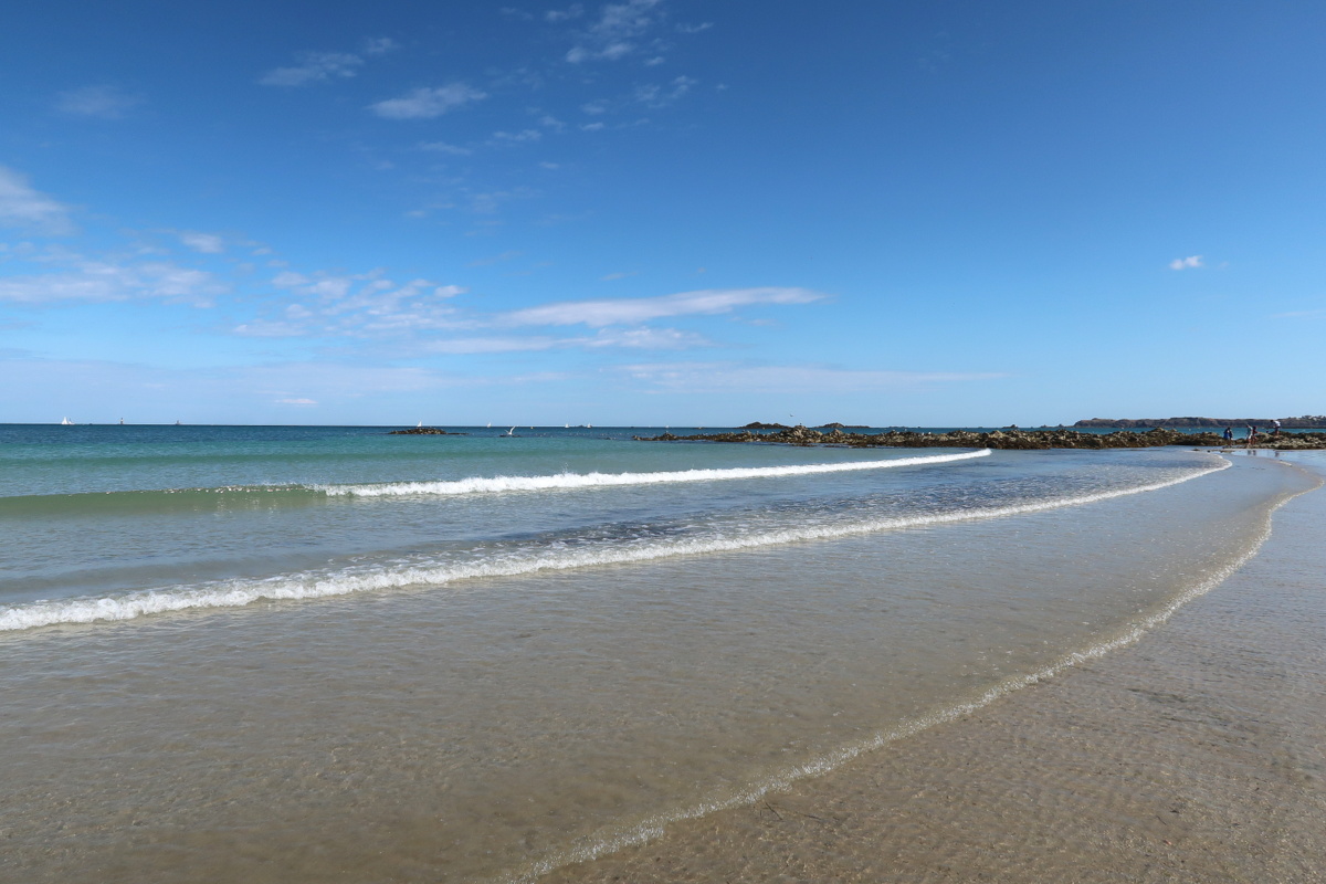 Lorsque nous allons à Saint-Malo, nous passons peu de temps entre les remparts mais profitons surtout du grand air et de pouvoir marcher les pieds dans l’eau sur la plage du Sillon. C’est ce que nous avons fait parmi les 9 kms marchés de la journée.