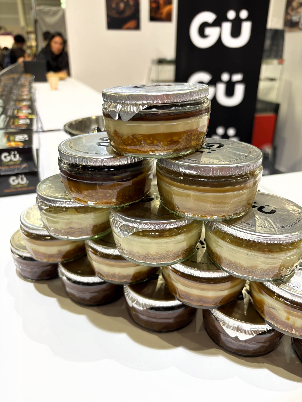 Gü participait en effet ce mercredi au Salon du chocolat et de la pâtisserie de Paris pour la première fois depuis 10 ans. Ca a été l’occasion pour moi de découvrir que l’on prononçait « Gü » comme « Goût ». Les desserts de la marque sont créés par le maître pâtissier français Frédéric Ponnavoy. Depuis les débuts, il joue avec les textures et s’inspire de délicieuses pâtisseries pour décliner de nombreuses recettes.